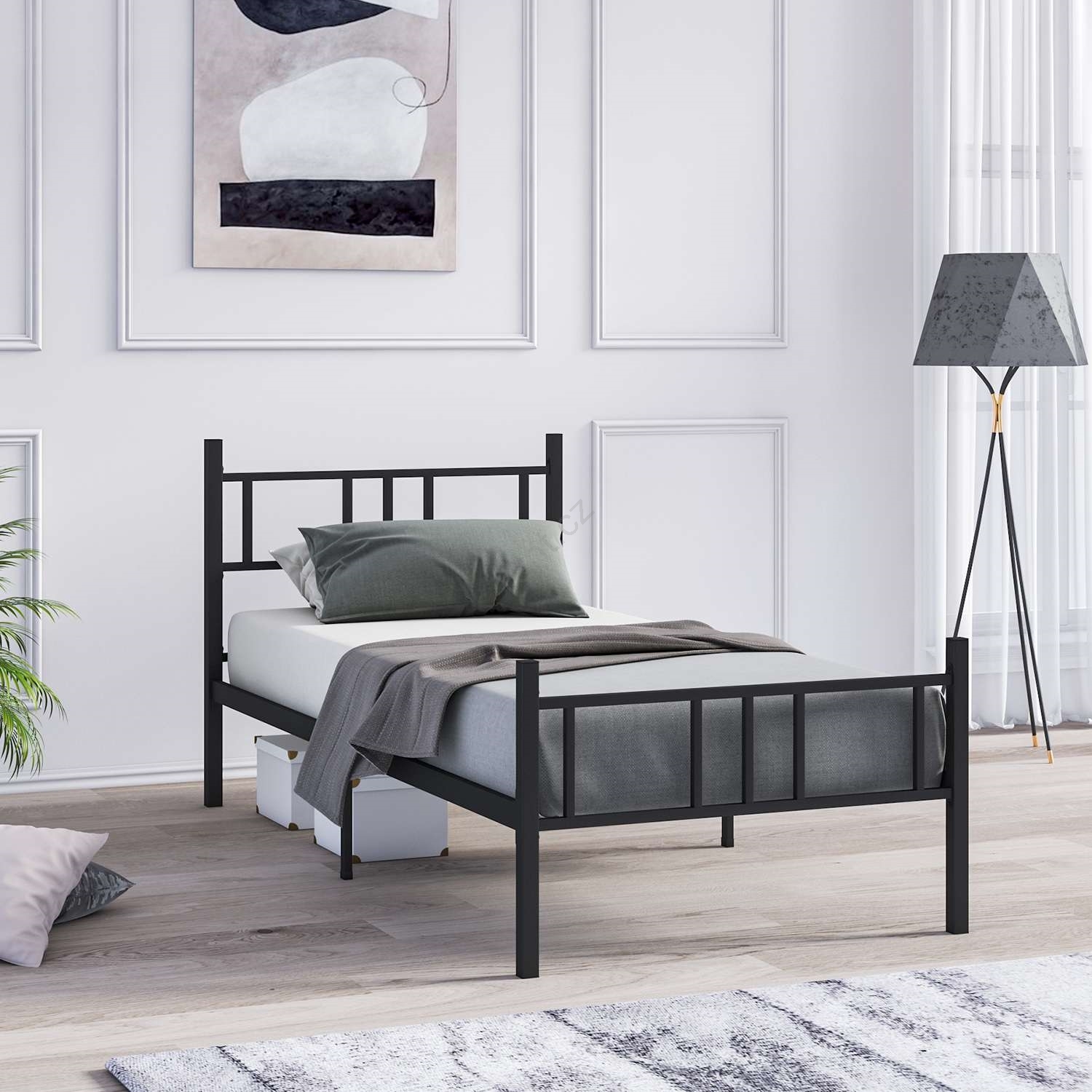 • Kovová jednolůžková postel PIRON 90x200 cm černá nosnost 120 kg