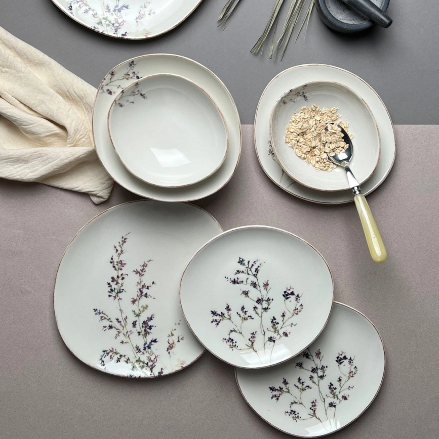 Jídelní sada 12 ks bílá/fialová/porcelán