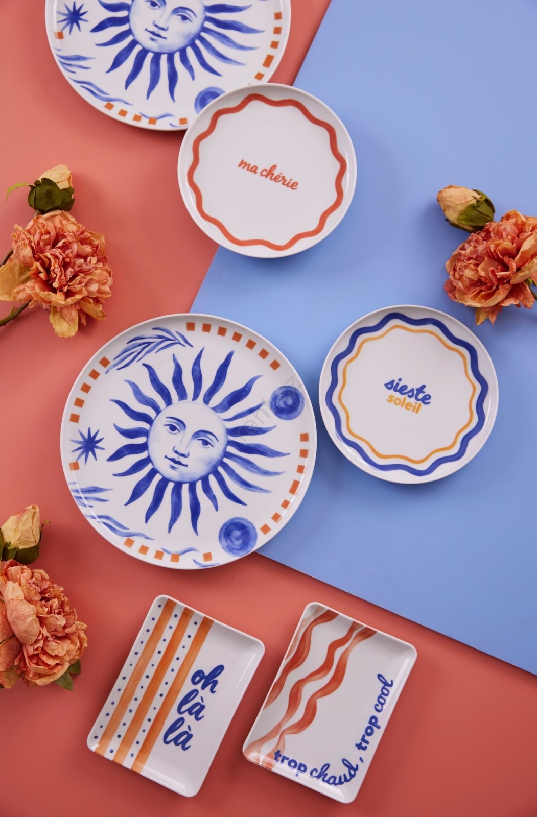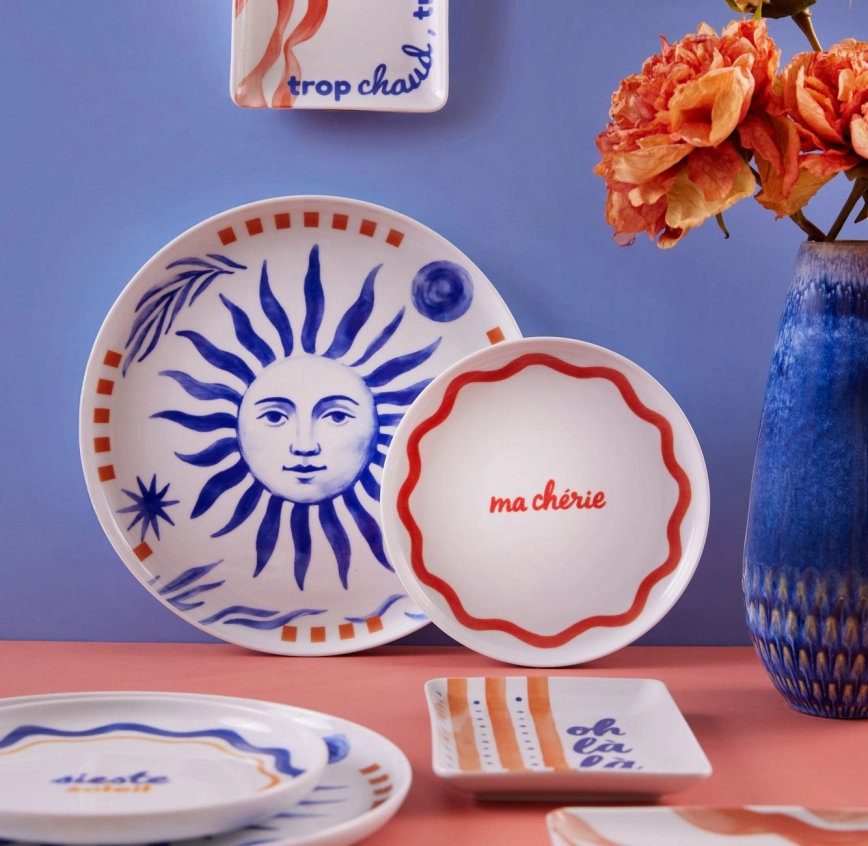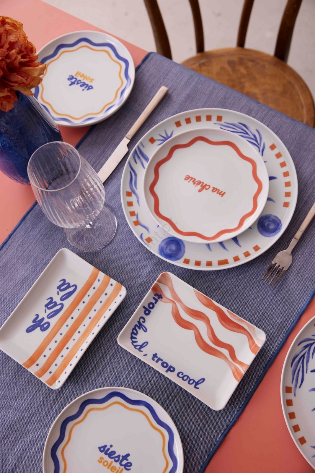 Jídelní sada 12 ks červená/modrá/bílá/porcelán