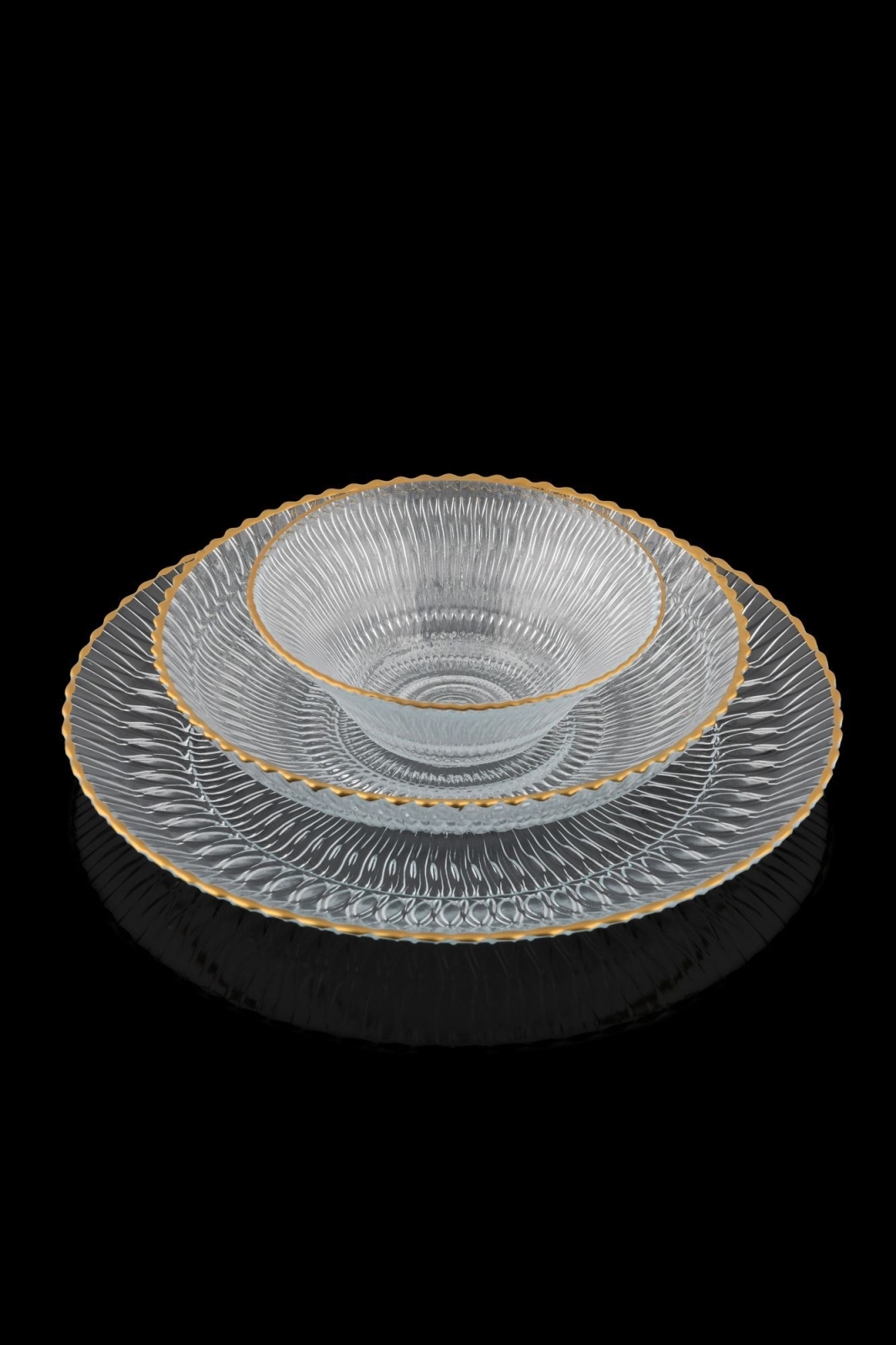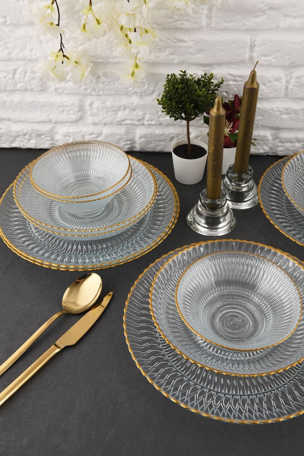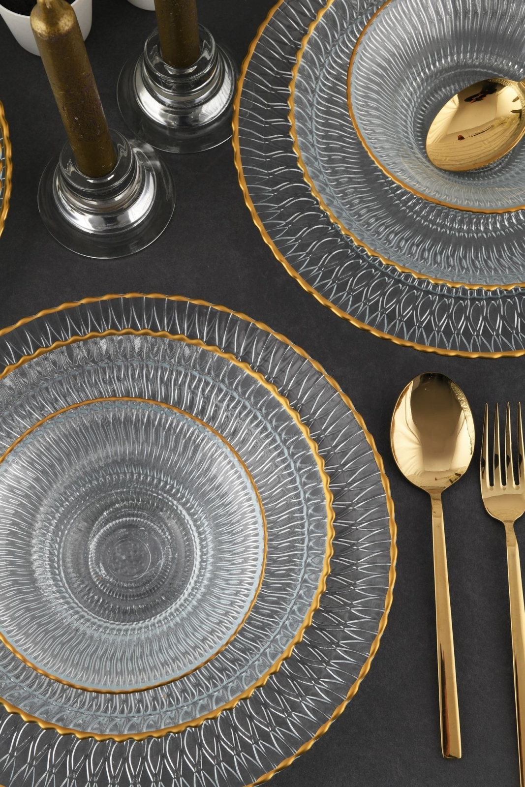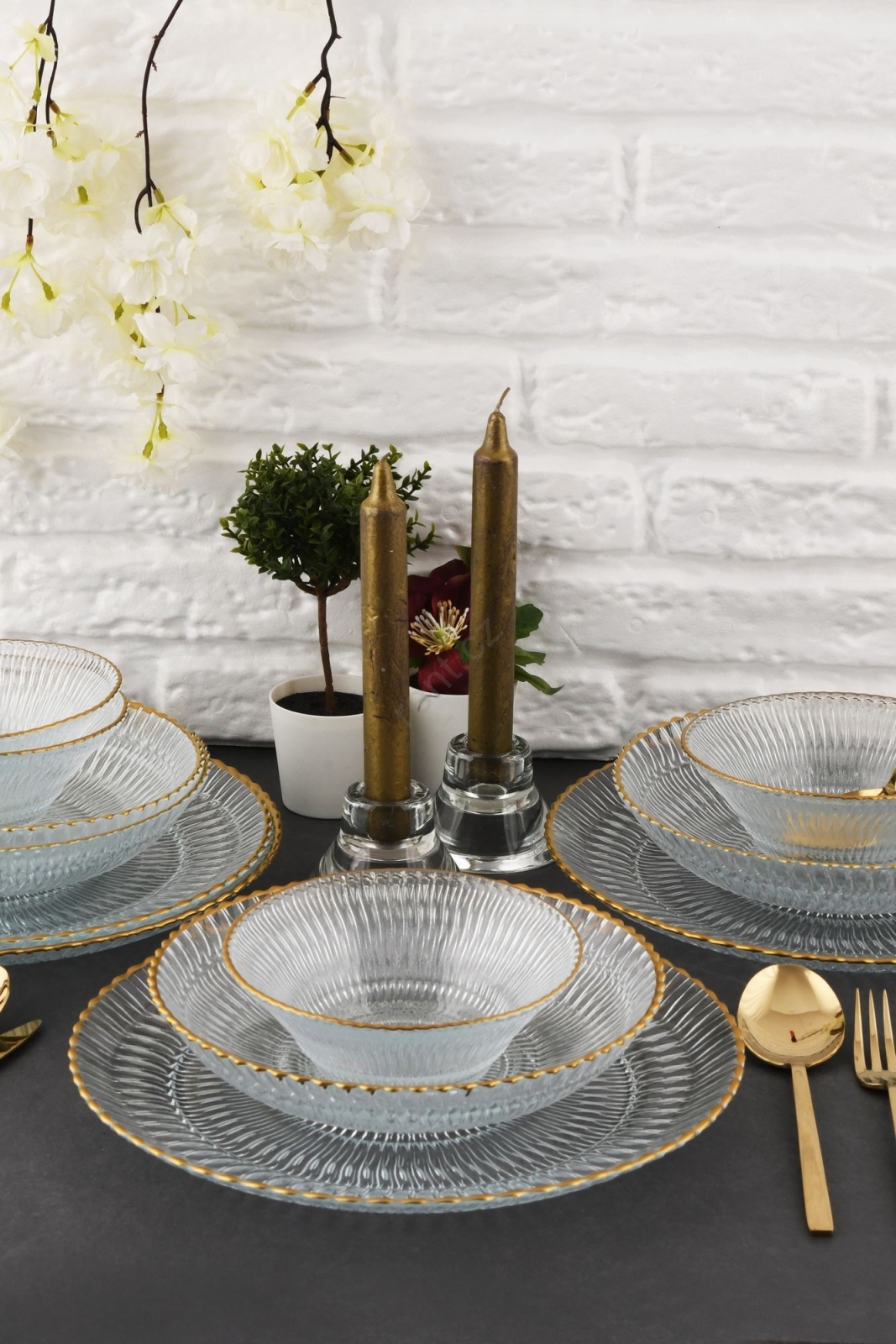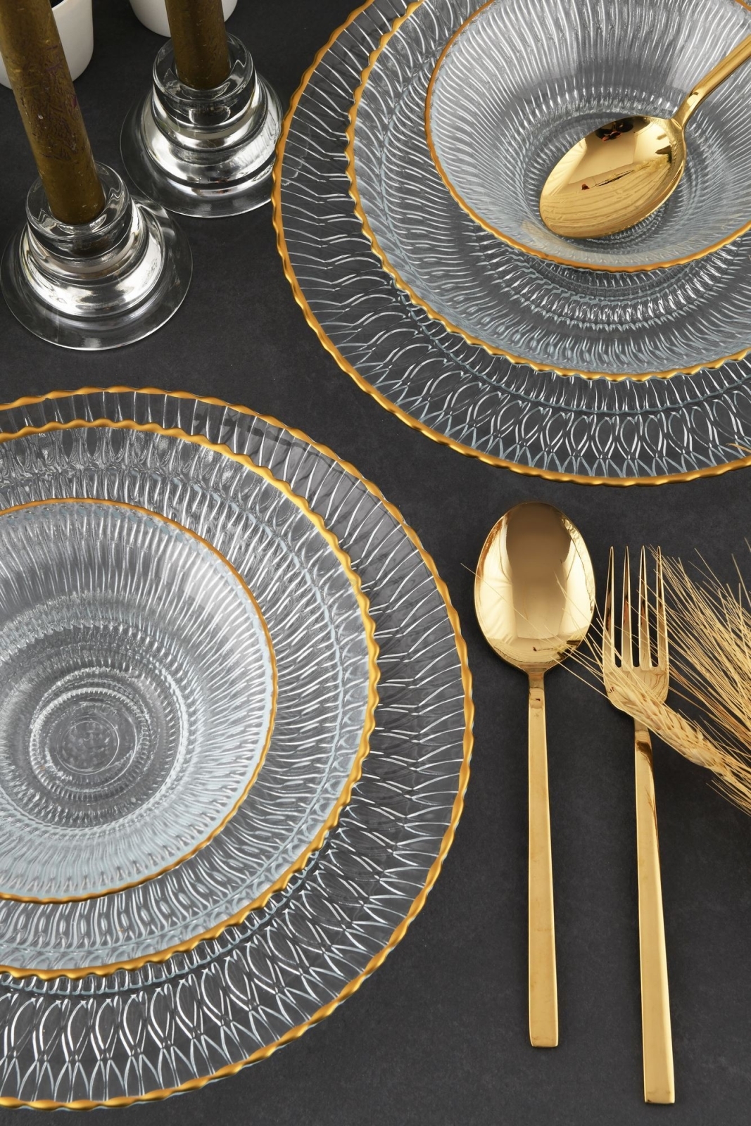 Jídelní sada 12 ks čirá/zlatá/sklo