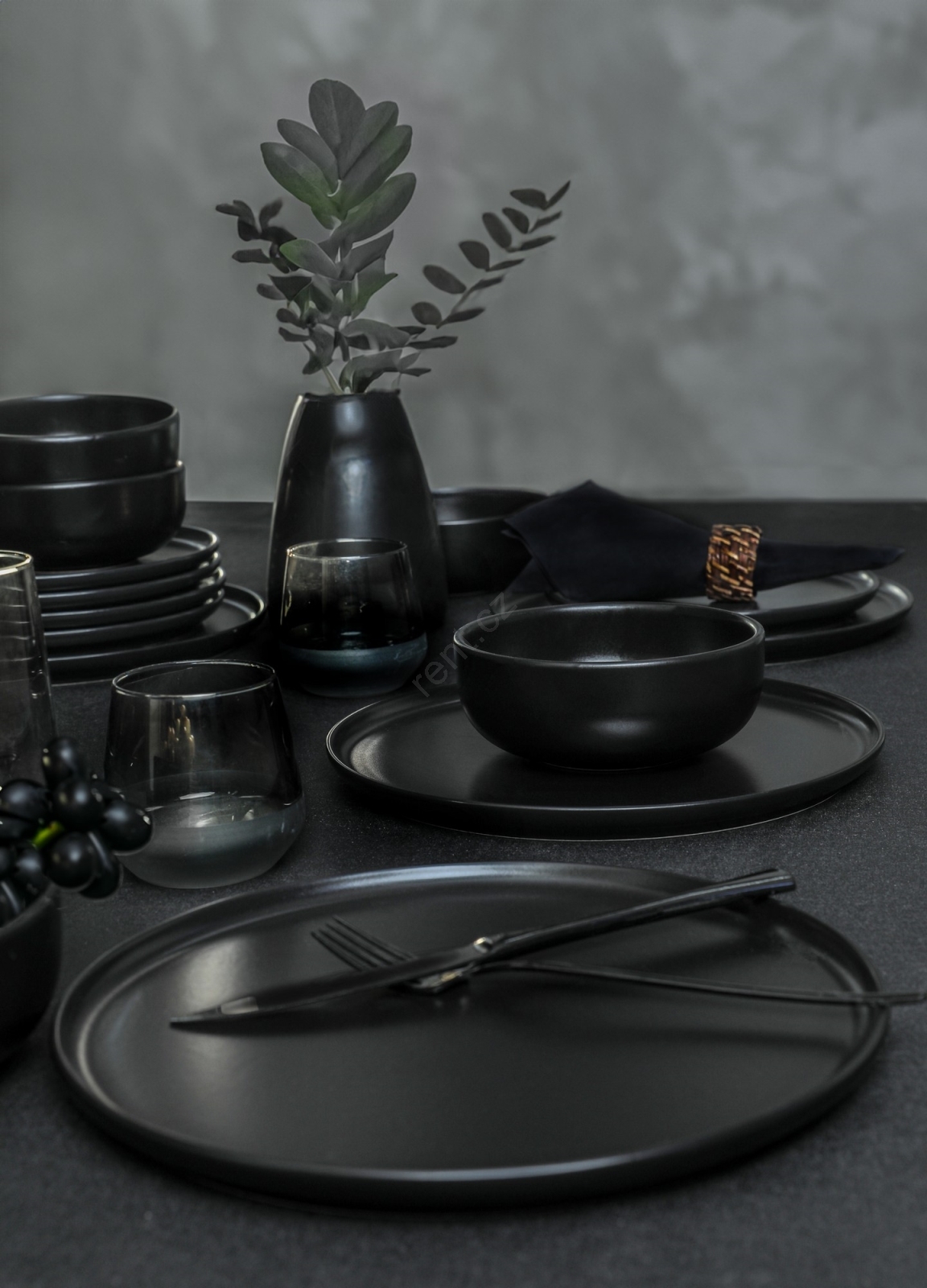 Jídelní sada 18 ks černá/keramika