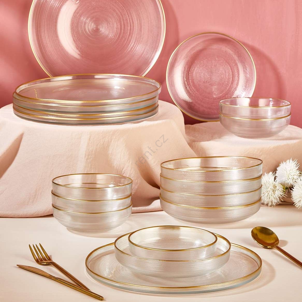 Jídelní sada 18 ks čirá/zlatá/sklo