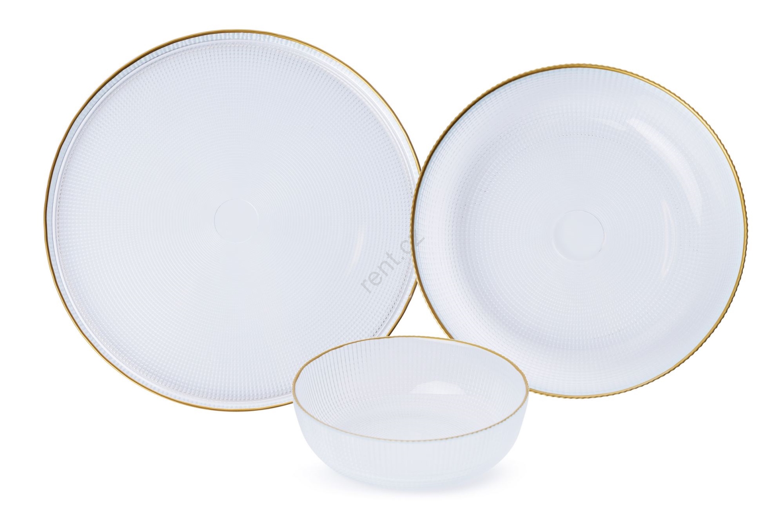 Jídelní sada 18 ks čirá/zlatá/sklo