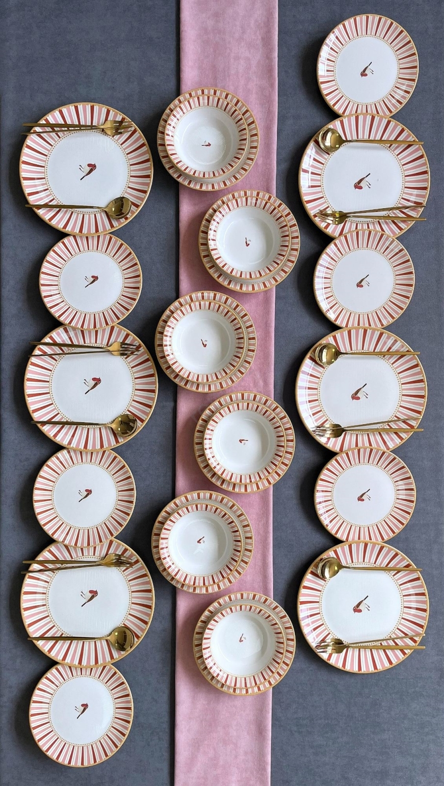 Jídelní sada 24 ks bílá/červená/zlatá/keramika