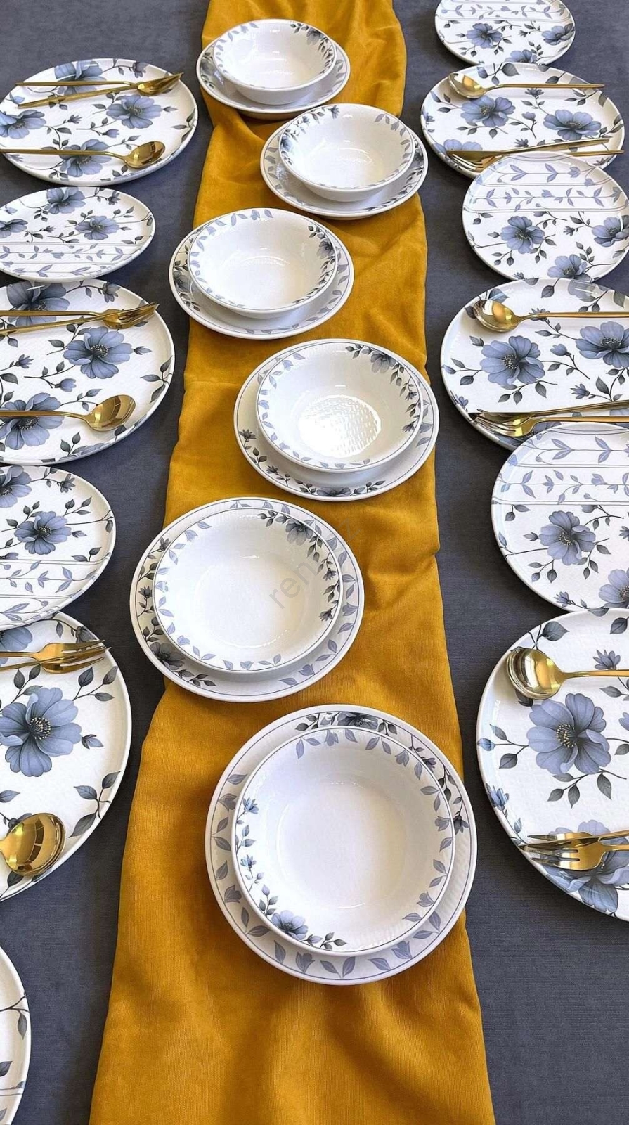 Jídelní sada 24 ks bílá/modrá/keramika