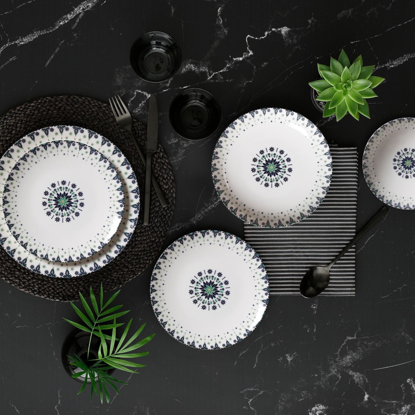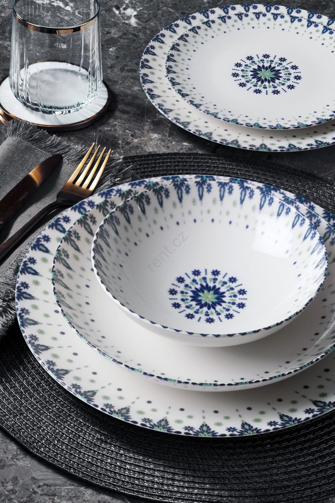 Jídelní sada 24 ks bílá/modrá/porcelán