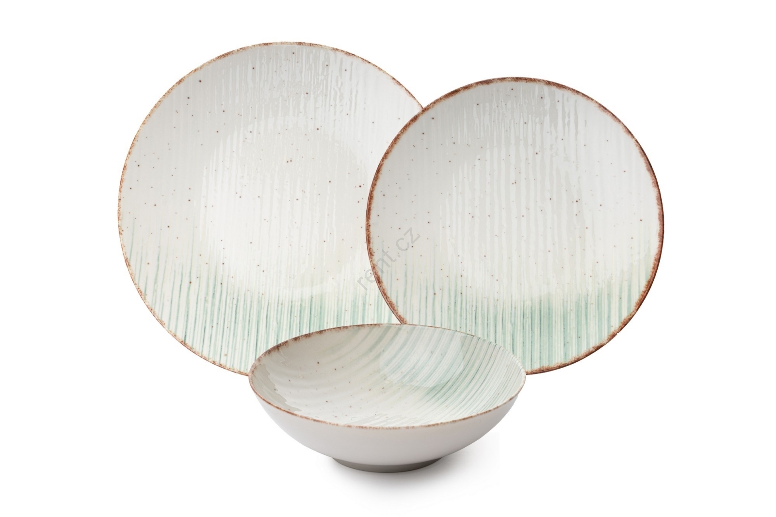 Jídelní sada 24 ks bílá/zelená/porcelán