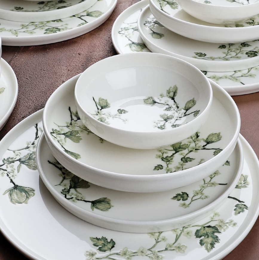 Jídelní sada 24 ks bílá/zelená/porcelán
