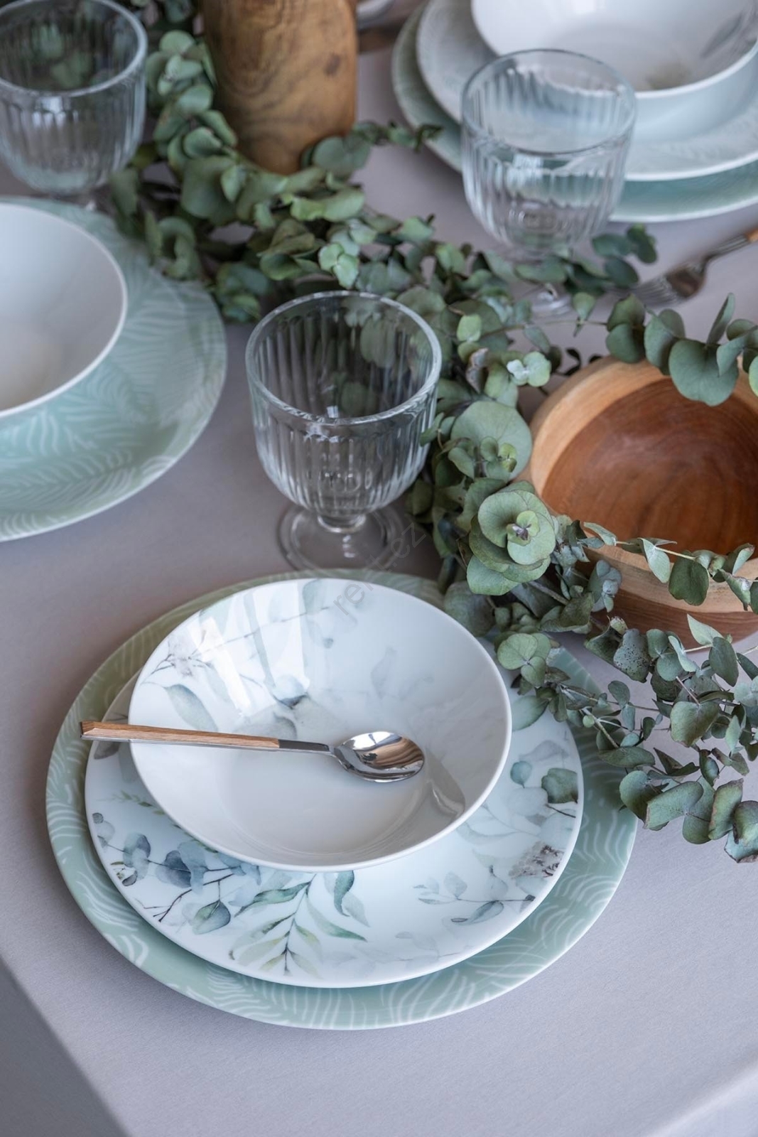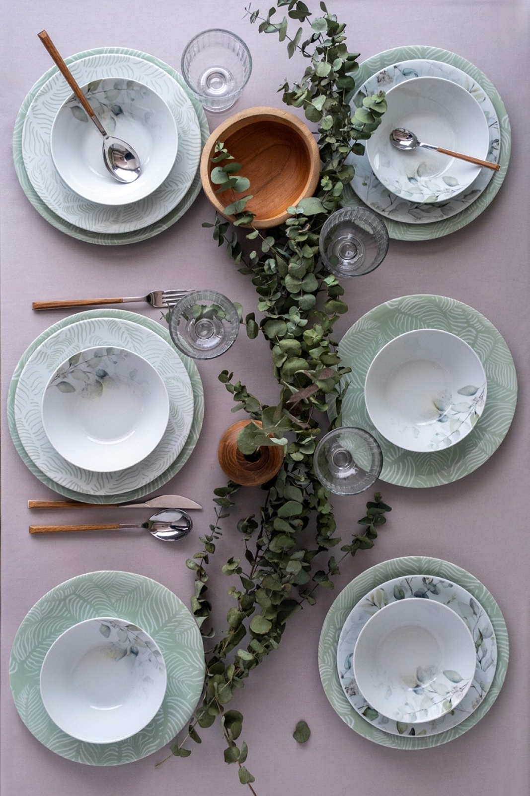 Jídelní sada 24 ks bílá/zelená/porcelán