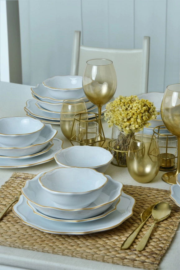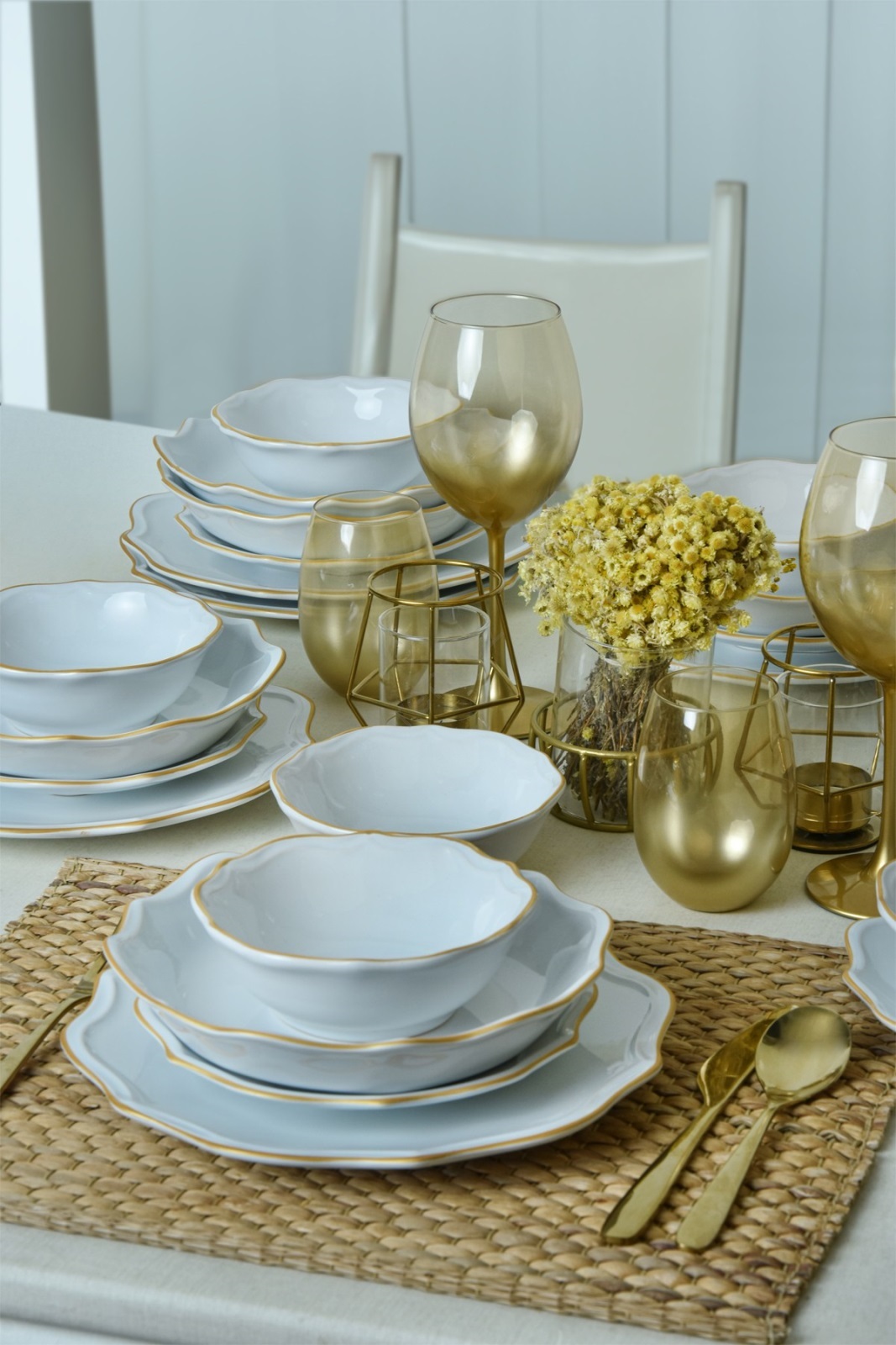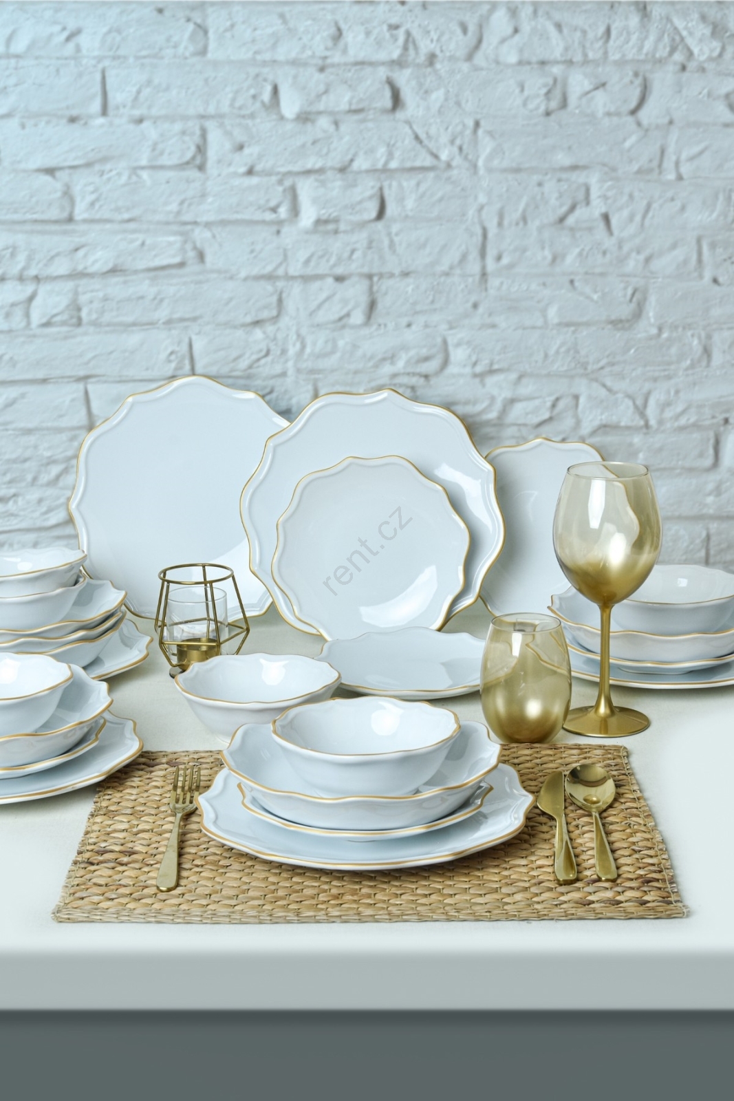 Jídelní sada 24 ks bílá/zlatá/kamenina