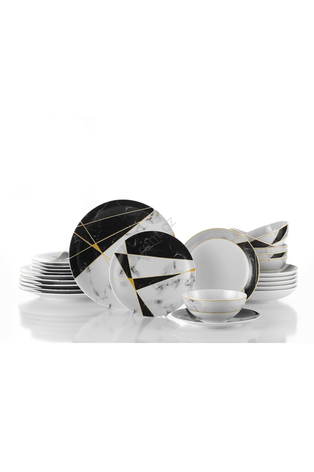 Jídelní sada 24 ks černá/bílá/zlatá/porcelán