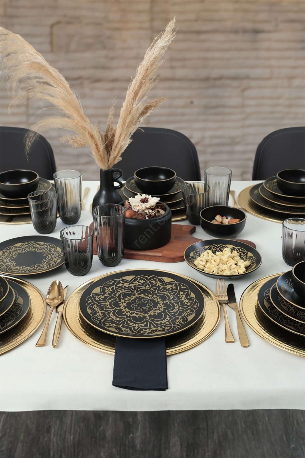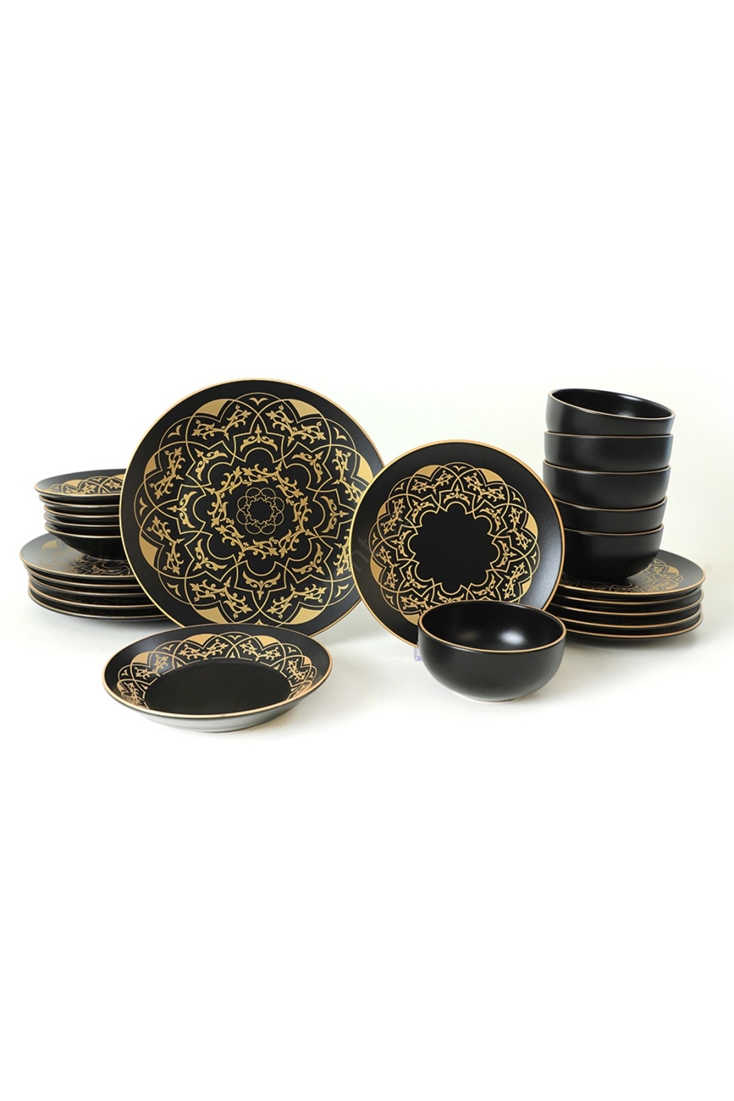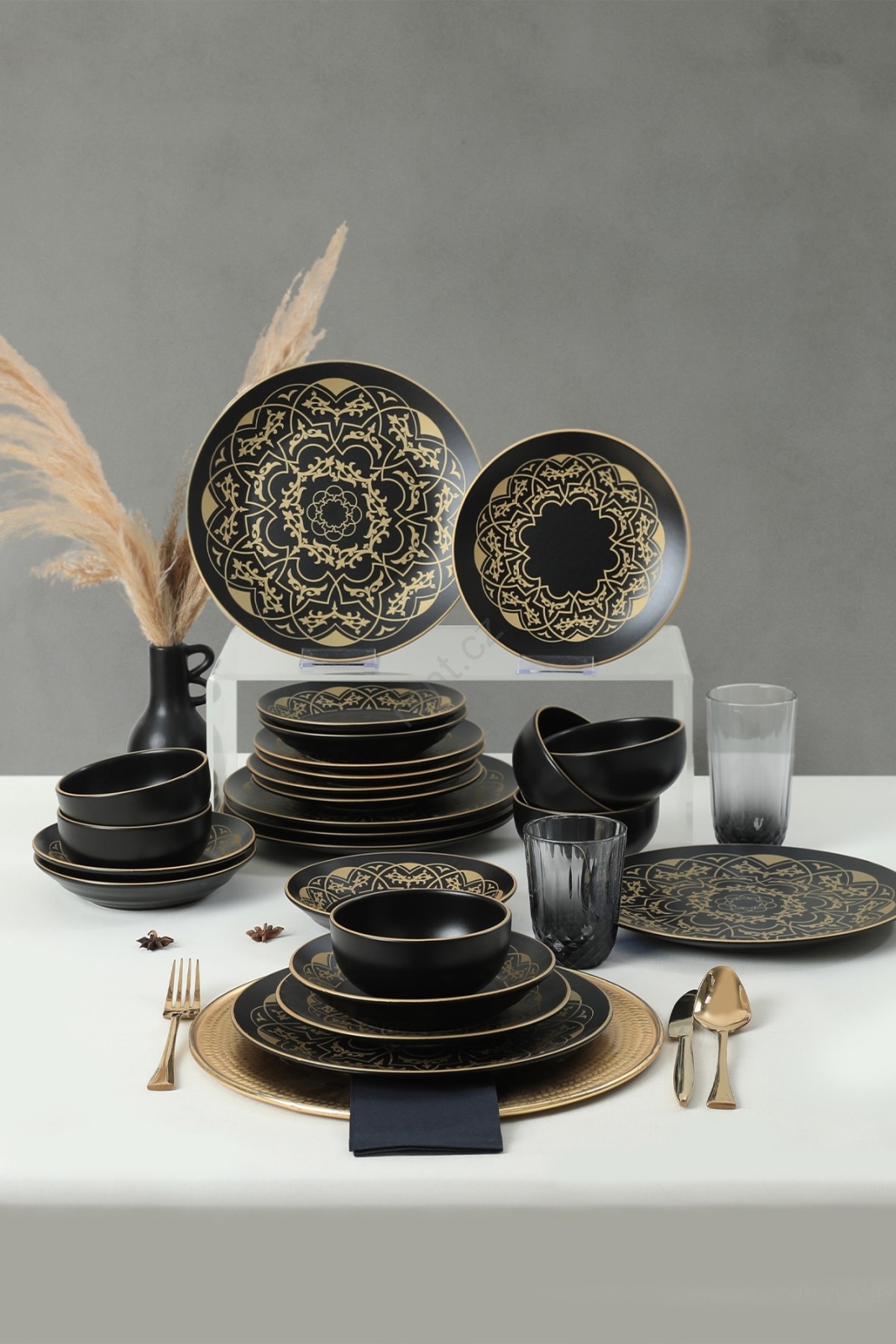 Jídelní sada 24 ks černá/zlatá/keramika