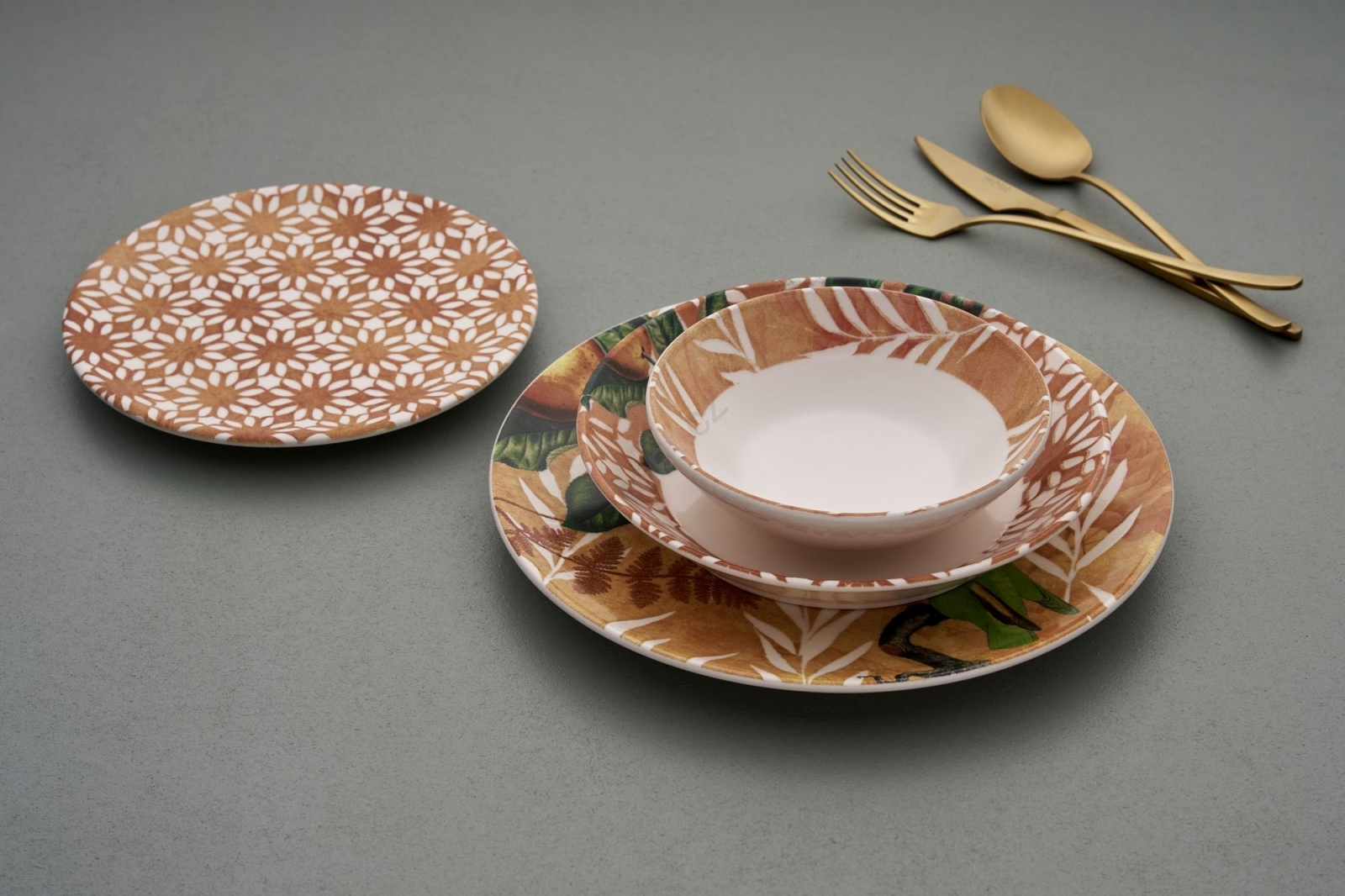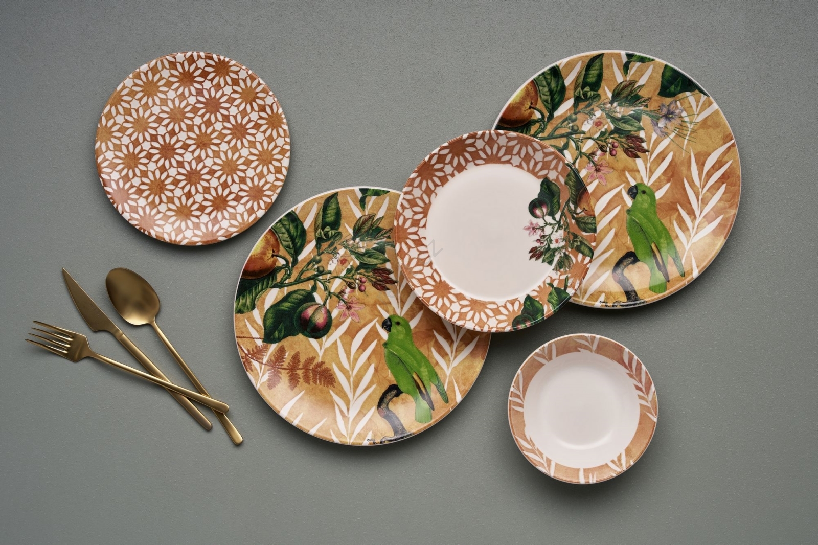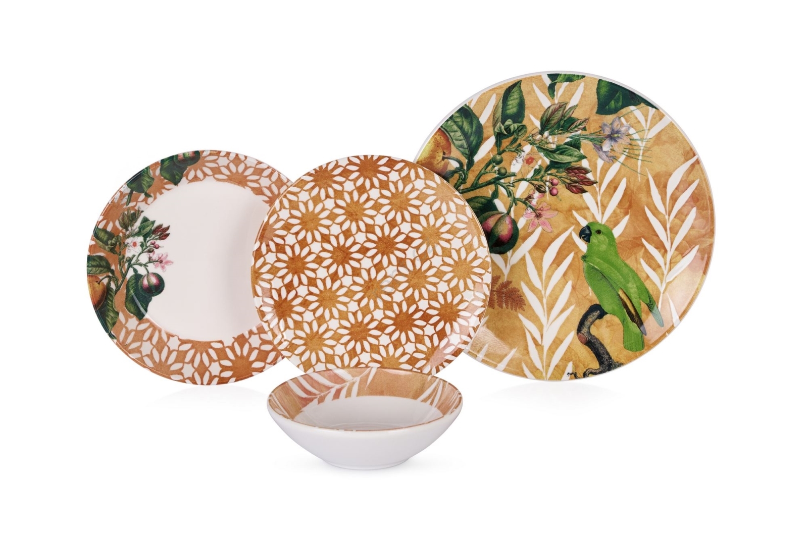 Jídelní sada 24 ks oranžová/zelená/keramika