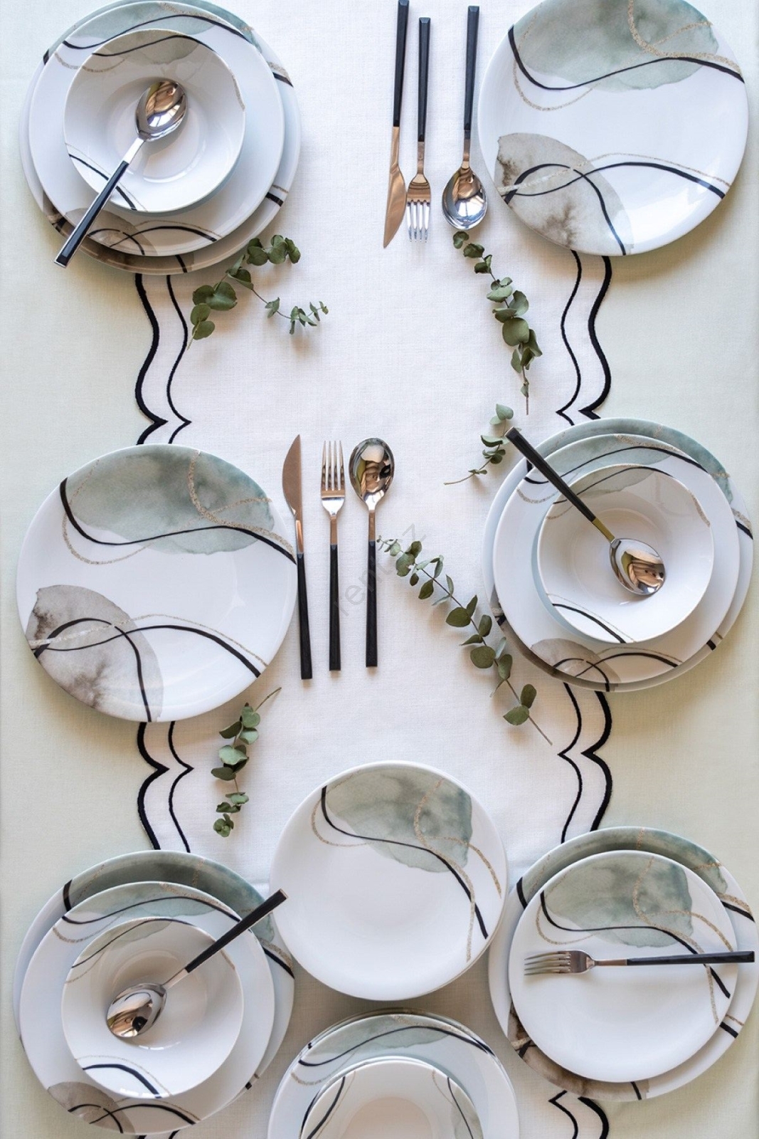 Jídelní sada 24 ks šedá/zelená/porcelán