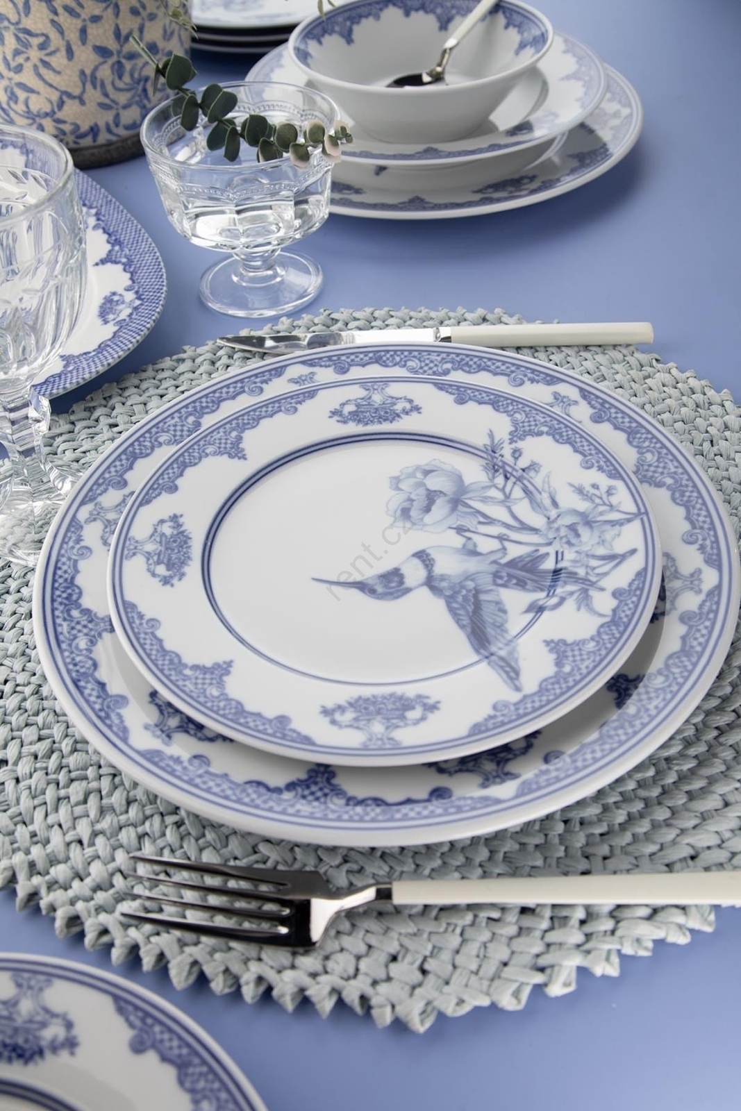 Jídelní sada 26 ks bílá/modrá/porcelán