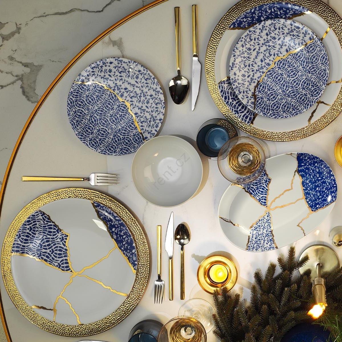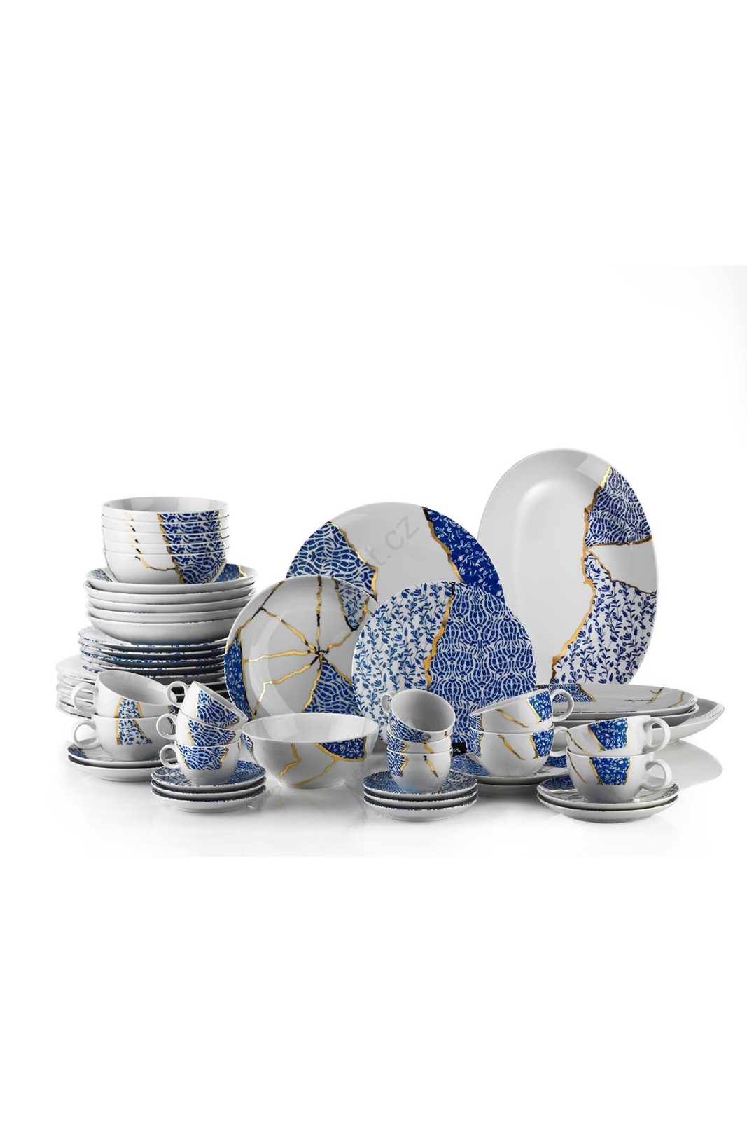 Jídelní sada 28 ks bílá/zlatá/modrá/porcelán