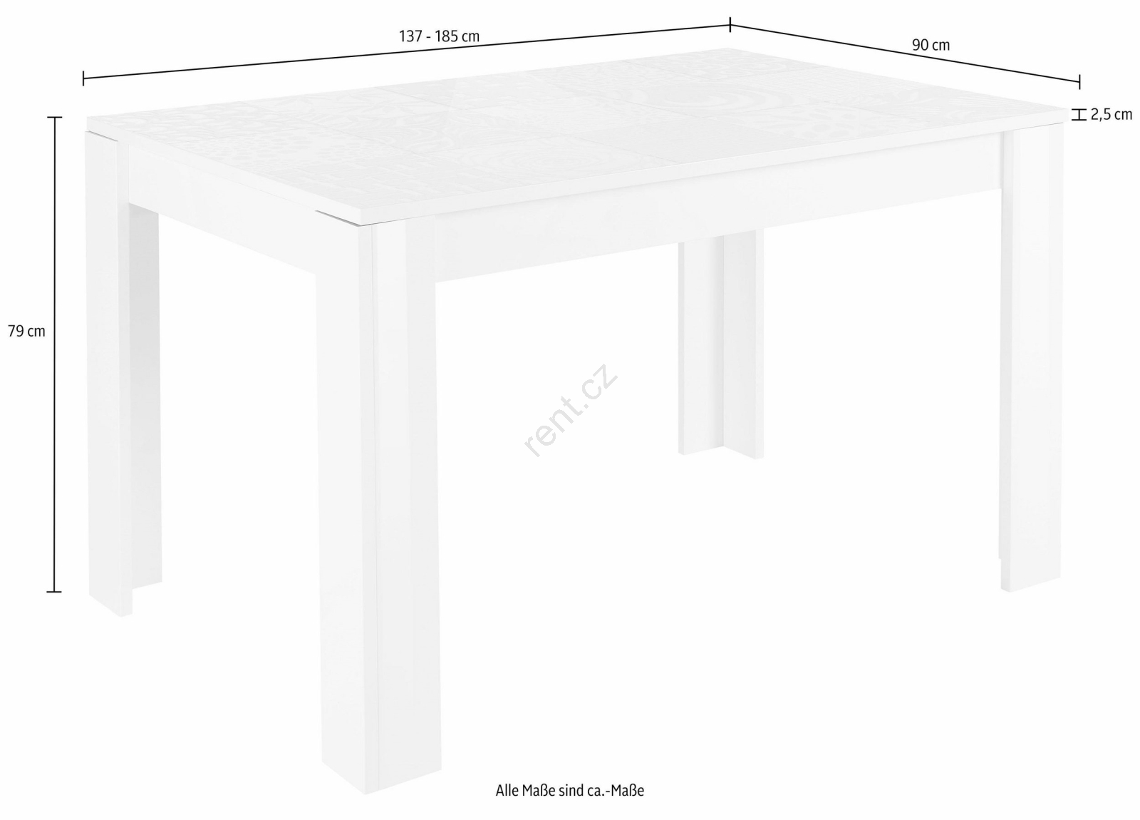 • Rozměr rozloženého stolu: 185 x 90 cm