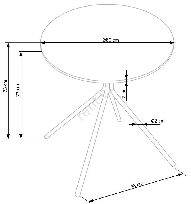 • Deska o průměru 80 cm poskytuje dostatek prostoru pro pohodlné stolování nebo práci.