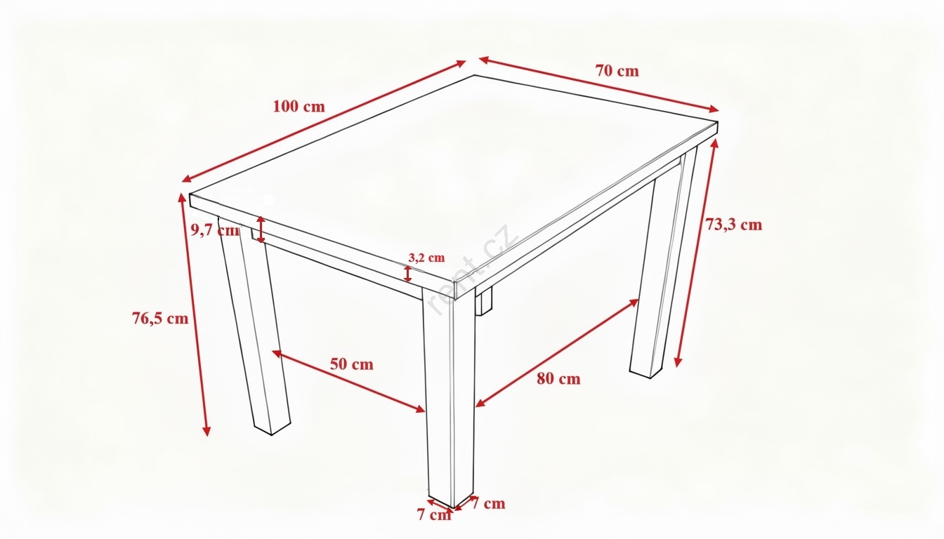 • Tloušťka desky stolu: 3,2 cm.