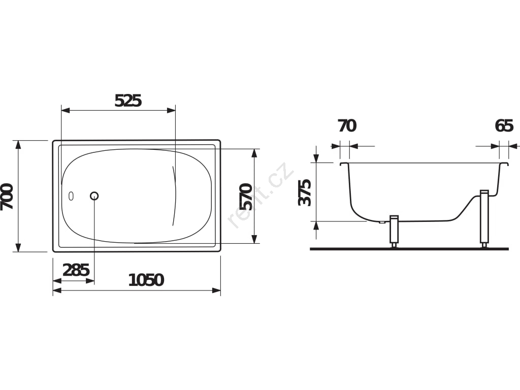 • Klasický obdélníkový tvar s rozměry: 1050 × 700 × 375 mm.