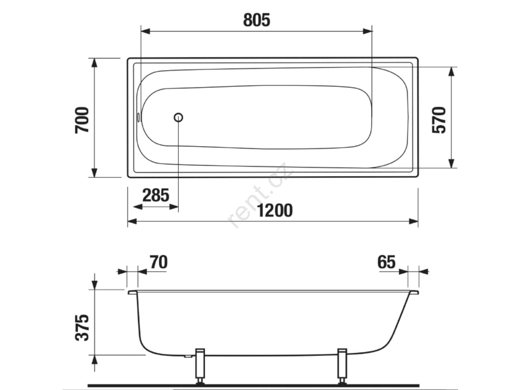 • Klasický obdélníkový tvar s rozměry: 1200 × 700 × 375 mm.