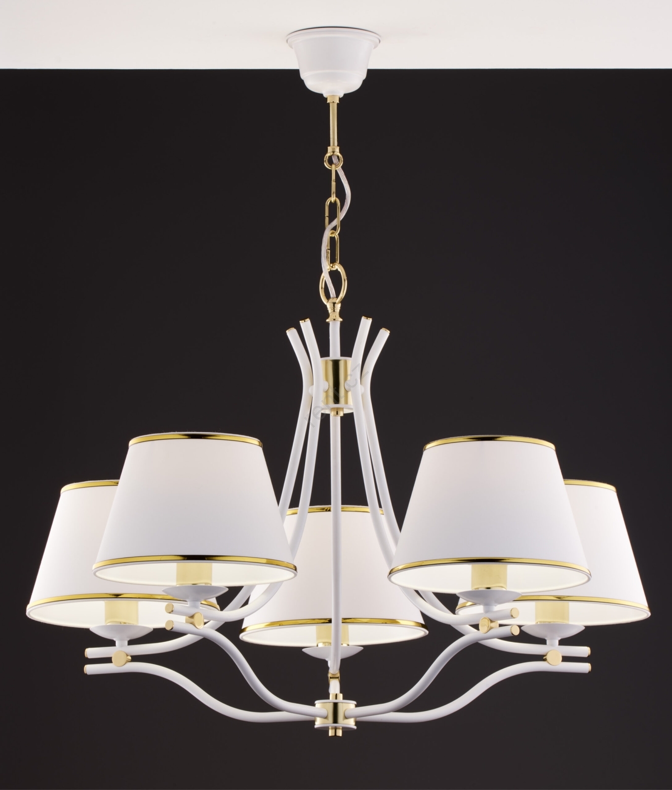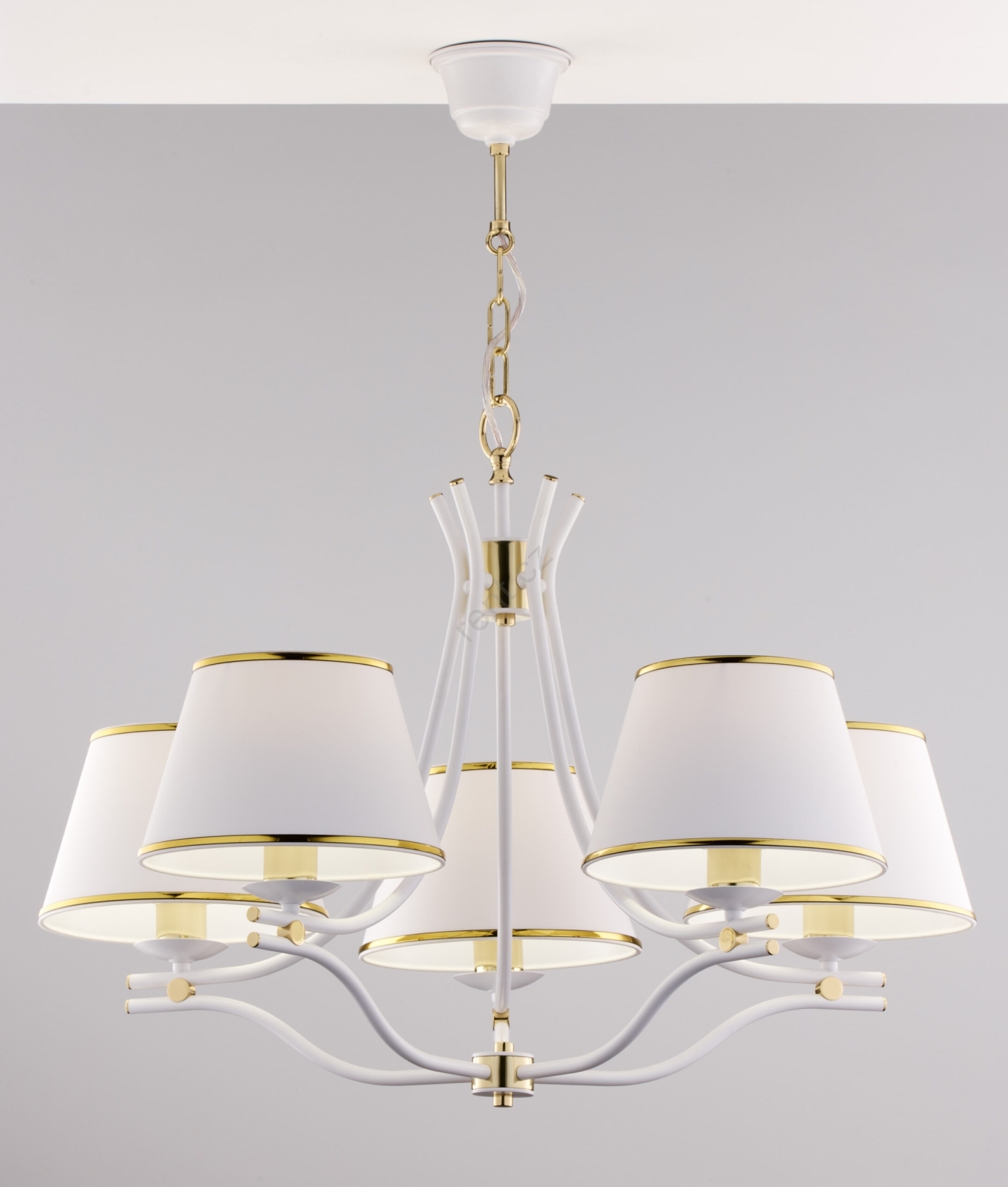 Jupiter 2084 - Lustr na řetězu SAMBA 5xE27/15W/230V bílá/zlatá charakterizuje pěkný design a funkční provedení.  Do svítidla je určena žárovka s paticí E27. Zde si můžete koupit další žárovky za výhodnou cenu. Získáte tak zajímavý doplněk do svého domova.