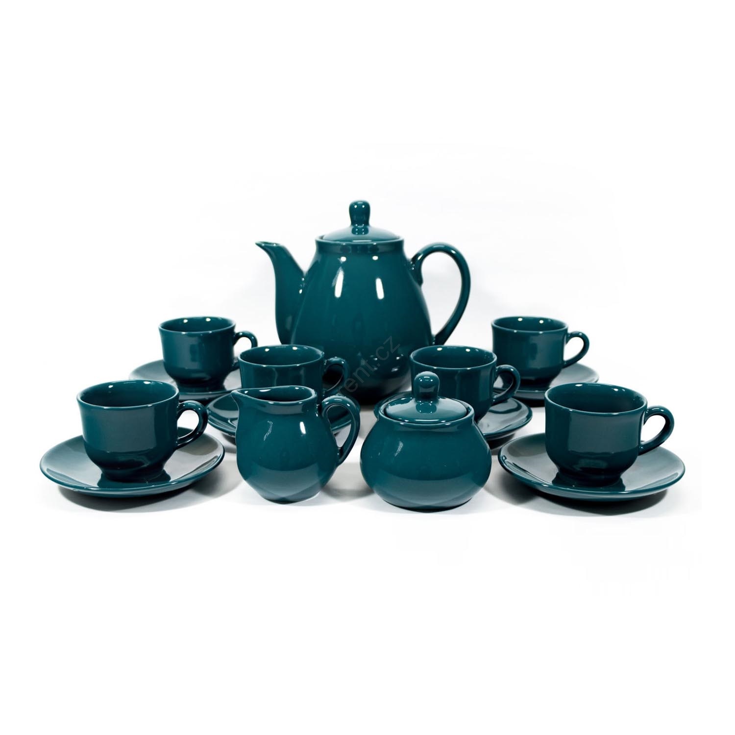 Keramická sada 6x šálek s podšálkem, 1x džbán s víkem, 1x cukřenka a 1x mléčenka