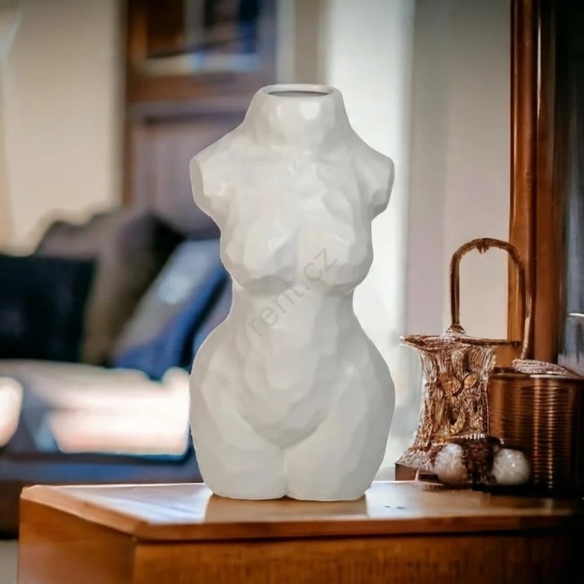 • Dekorační váza na květiny ve tvaru ženské postavy v bílé barvě.