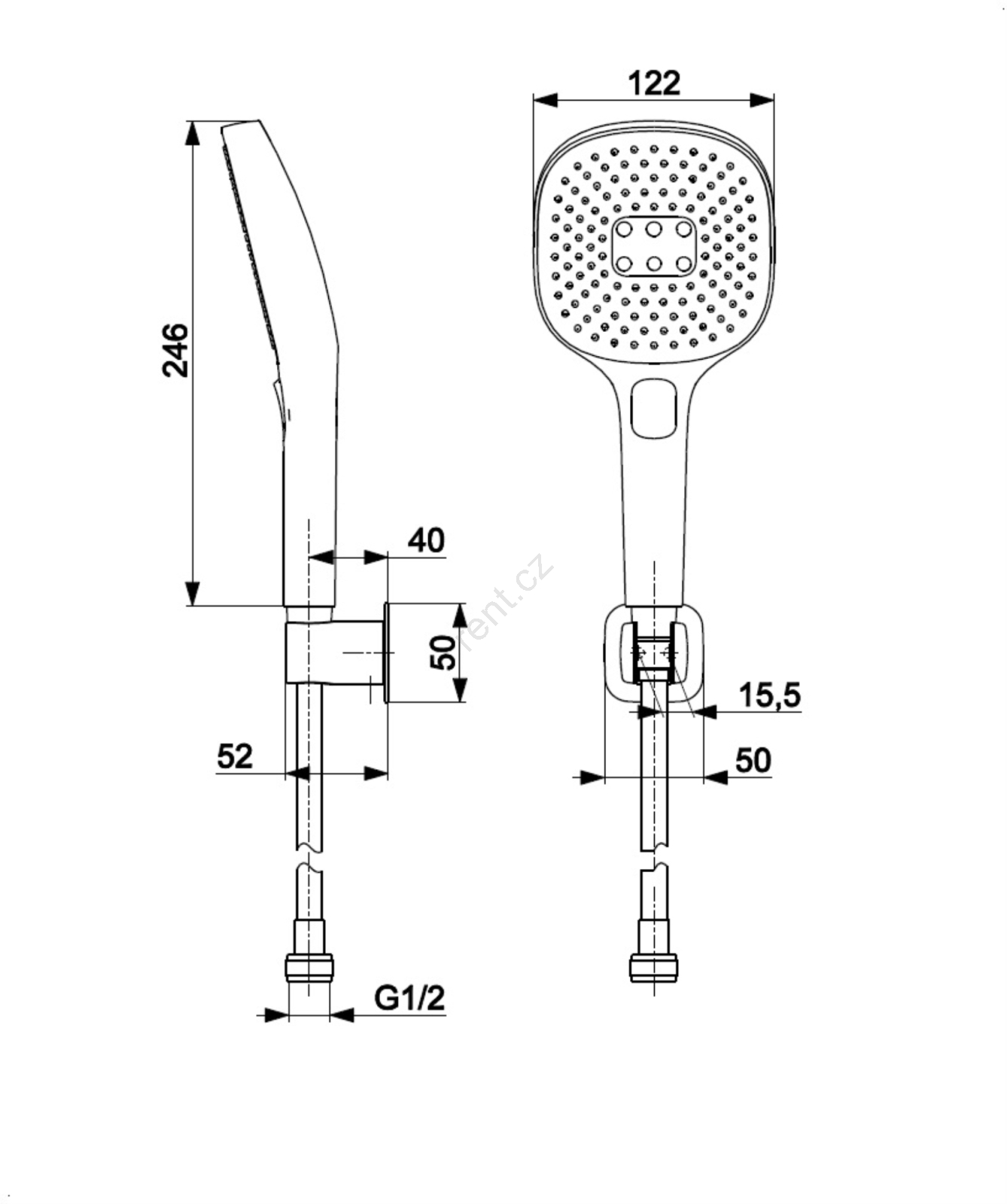 • Balení obsahuje: nastavitelné nástěnné madlo, montážní sada, ruční sprcha, PVC hadice (L=1500 mm).