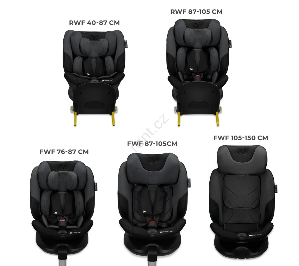 • Cestování proti směru jízdy (RWF) je možné až do čtyř let věku, což významně zvyšuje bezpečnost při čelním nárazu.