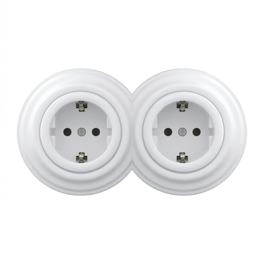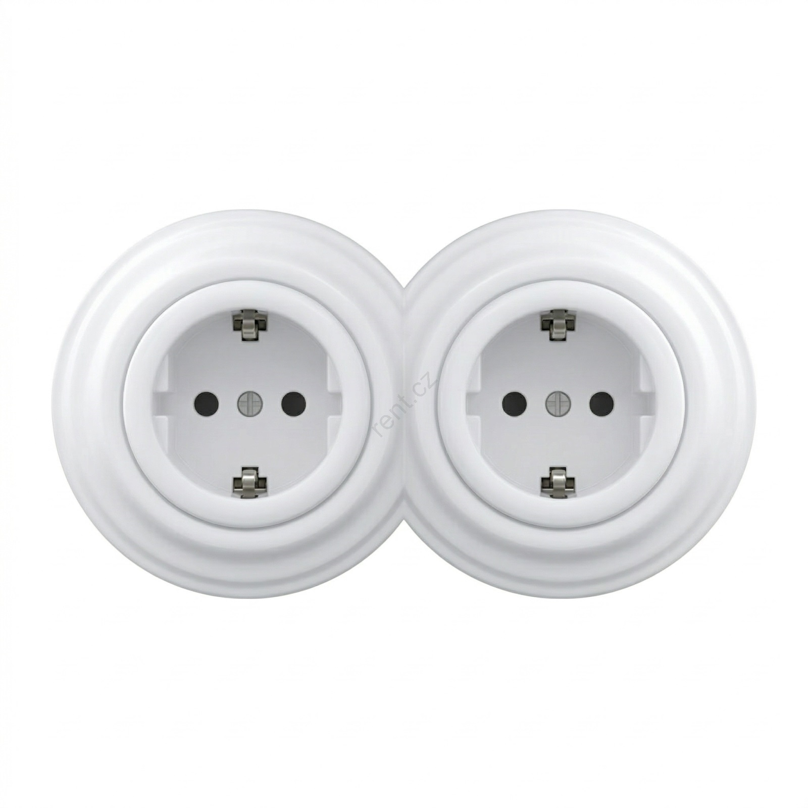 • Kliklap - Dvojitá retro zásuvka domovní s rámečkem SCHUKO 230V/16A keramická bílá