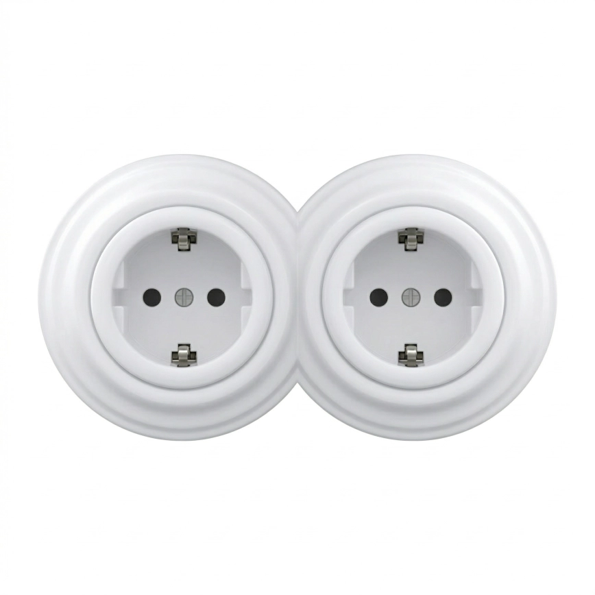 • Kliklap - Dvojitá retro zásuvka domovní s rámečkem SCHUKO 230V sněhově bílá