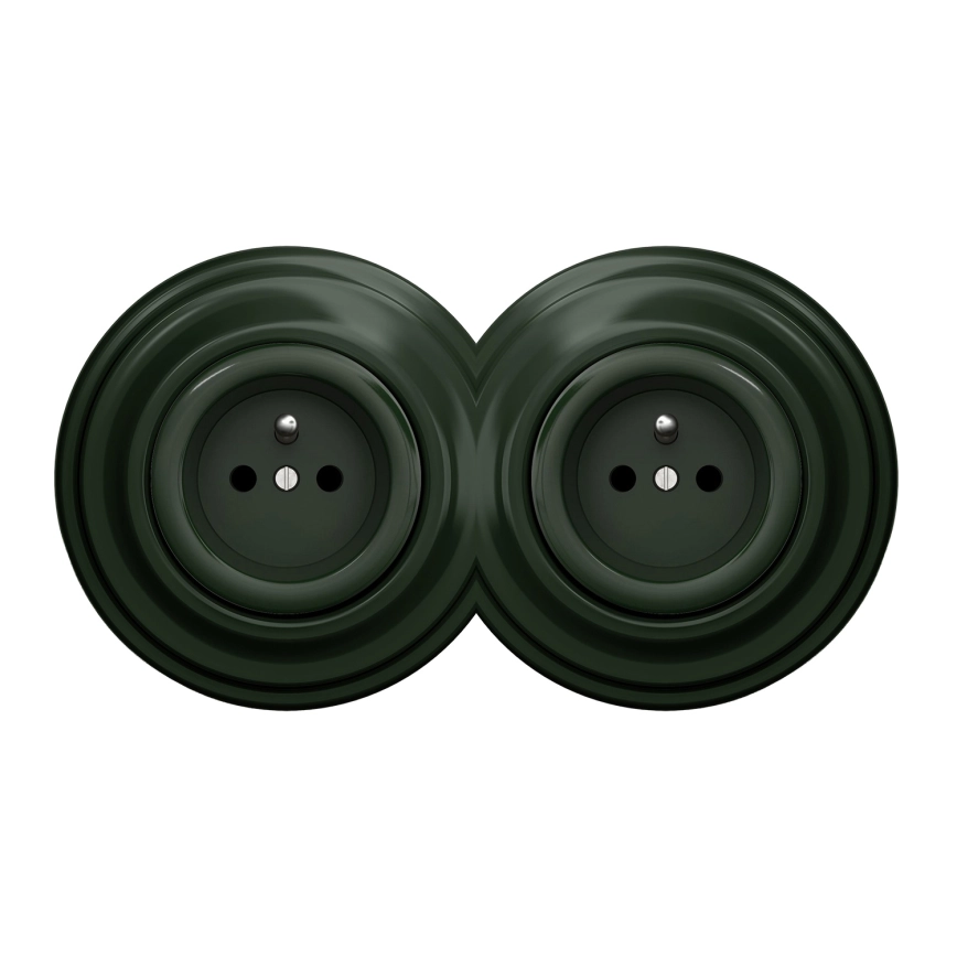 Kliklap - Dvojitá retro zásuvka s rámečkem 230V zelená