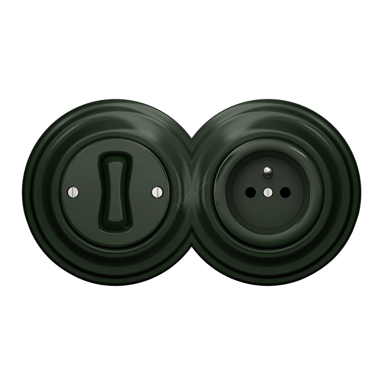 Kliklap - Retro jednopólový vypínač č. 1 a zásuvka 230V s rámečkem zelená