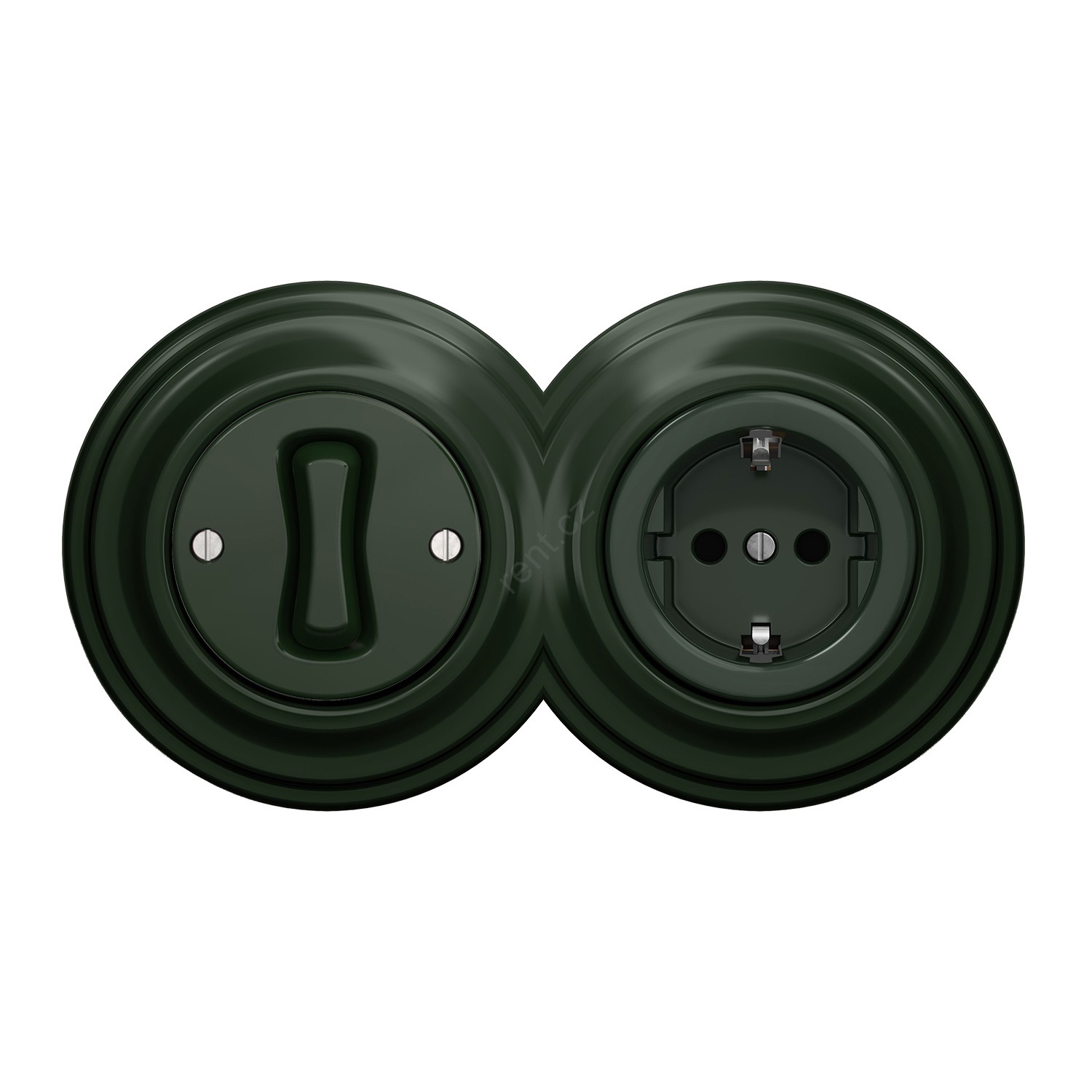 Kliklap - Retro jednopólový vypínač č. 1 a zásuvka SCHUKO 230V s rámečkem zelená
