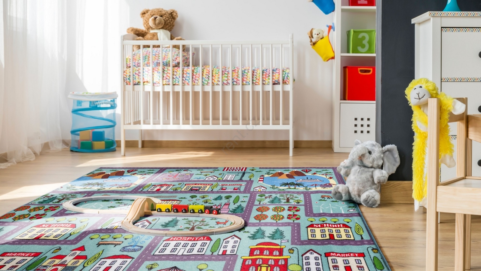 Dětský koberec STELLA STREETS 80x100 cm tyrkysová/město