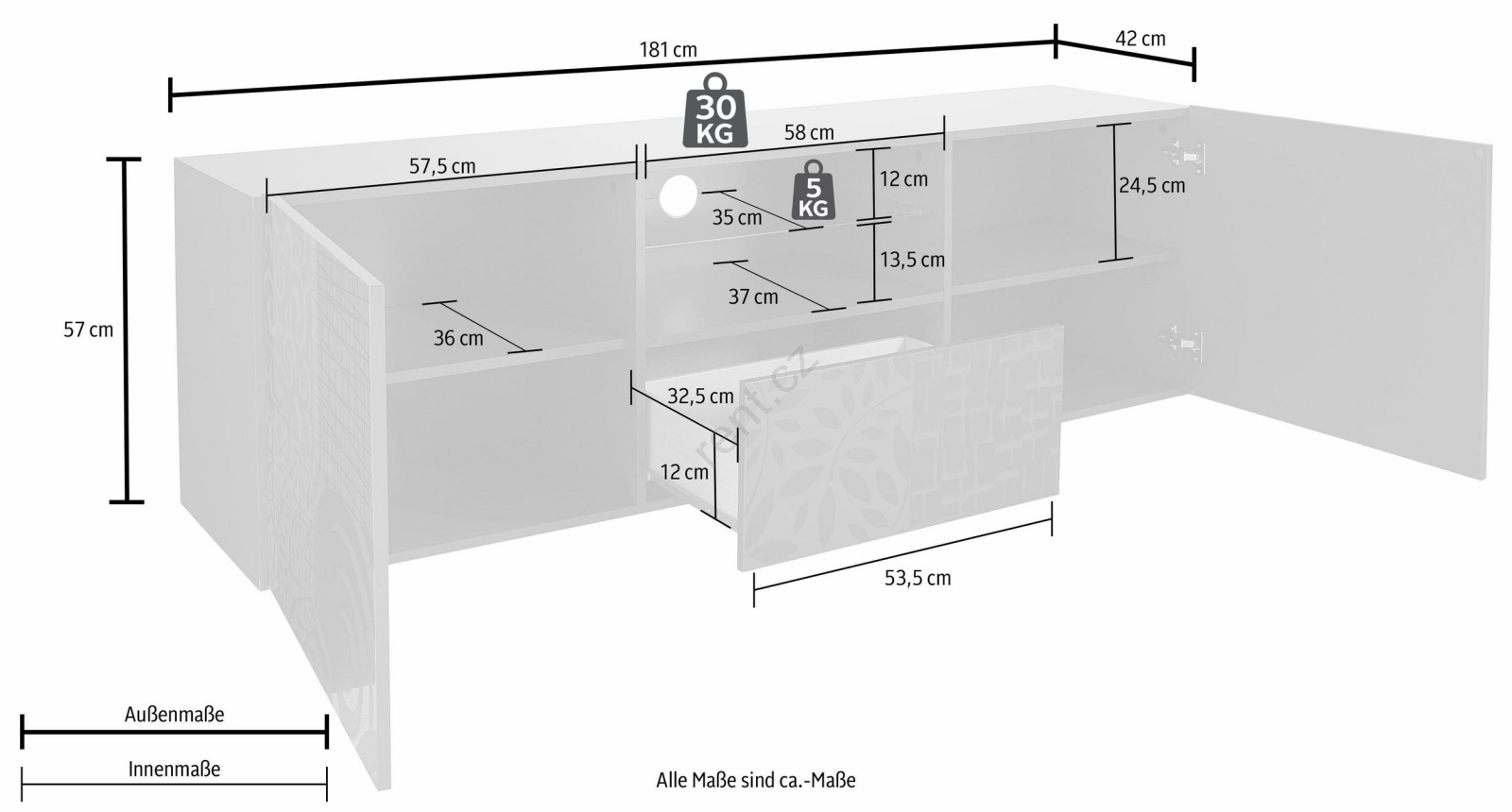 • Box č. 2: 13,1 x 73,5 x 44,8 cm (20 kg).