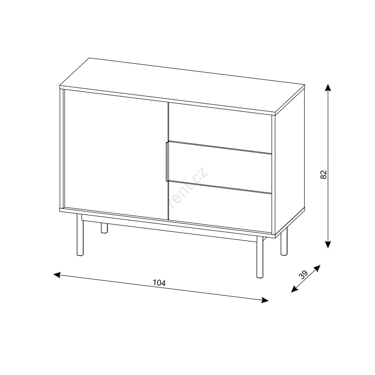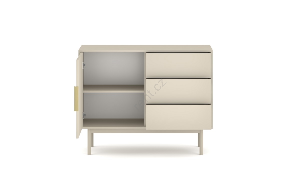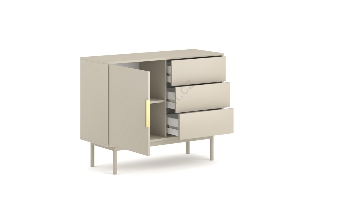 • Má jedny dvířka na levé straně a tři zásuvky na pravé straně, pro přehledné ukládání věcí.