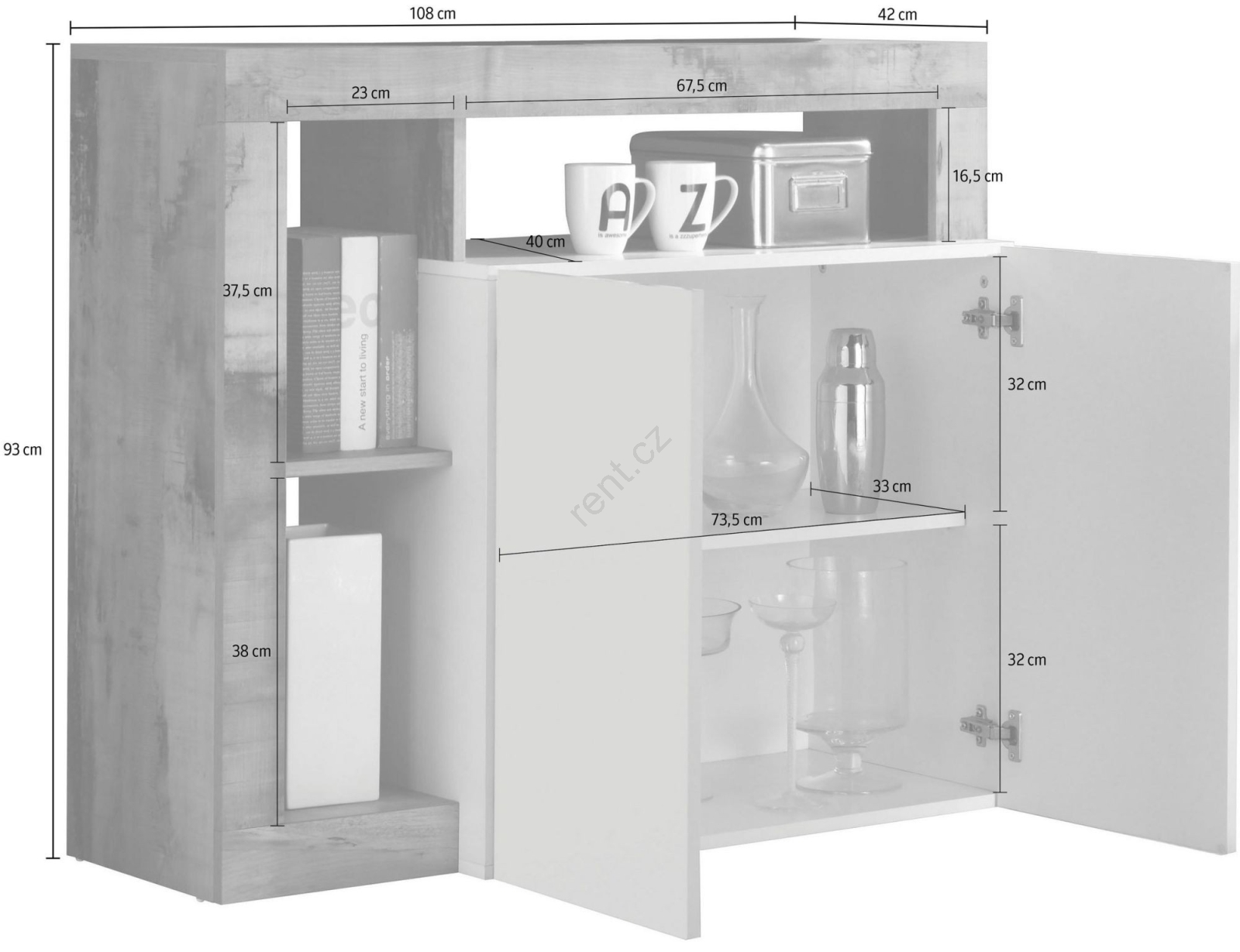 • Díky skříňkám nabízí velkorysý úložný prostor pro organizaci předmětů denní potřeby.