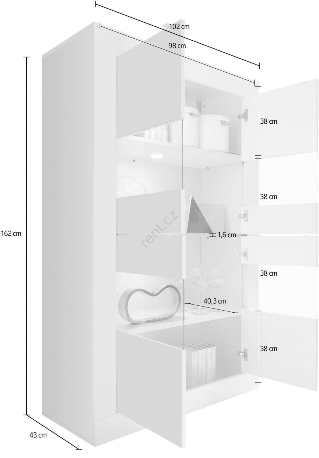 • Díky skříňkám nabízí velkorysý úložný prostor pro organizaci předmětů denní potřeby.