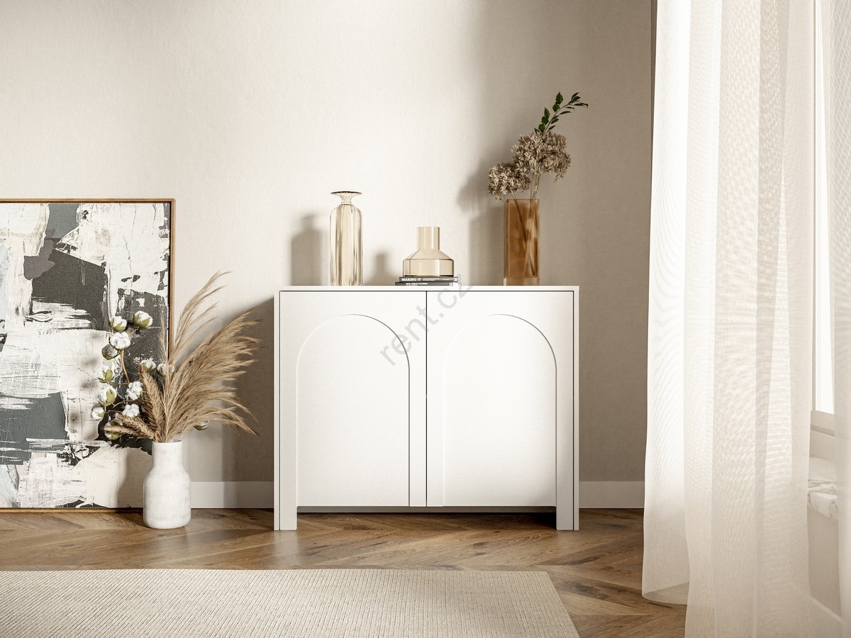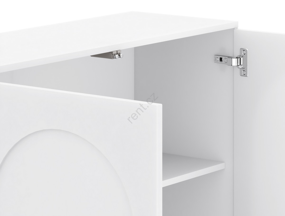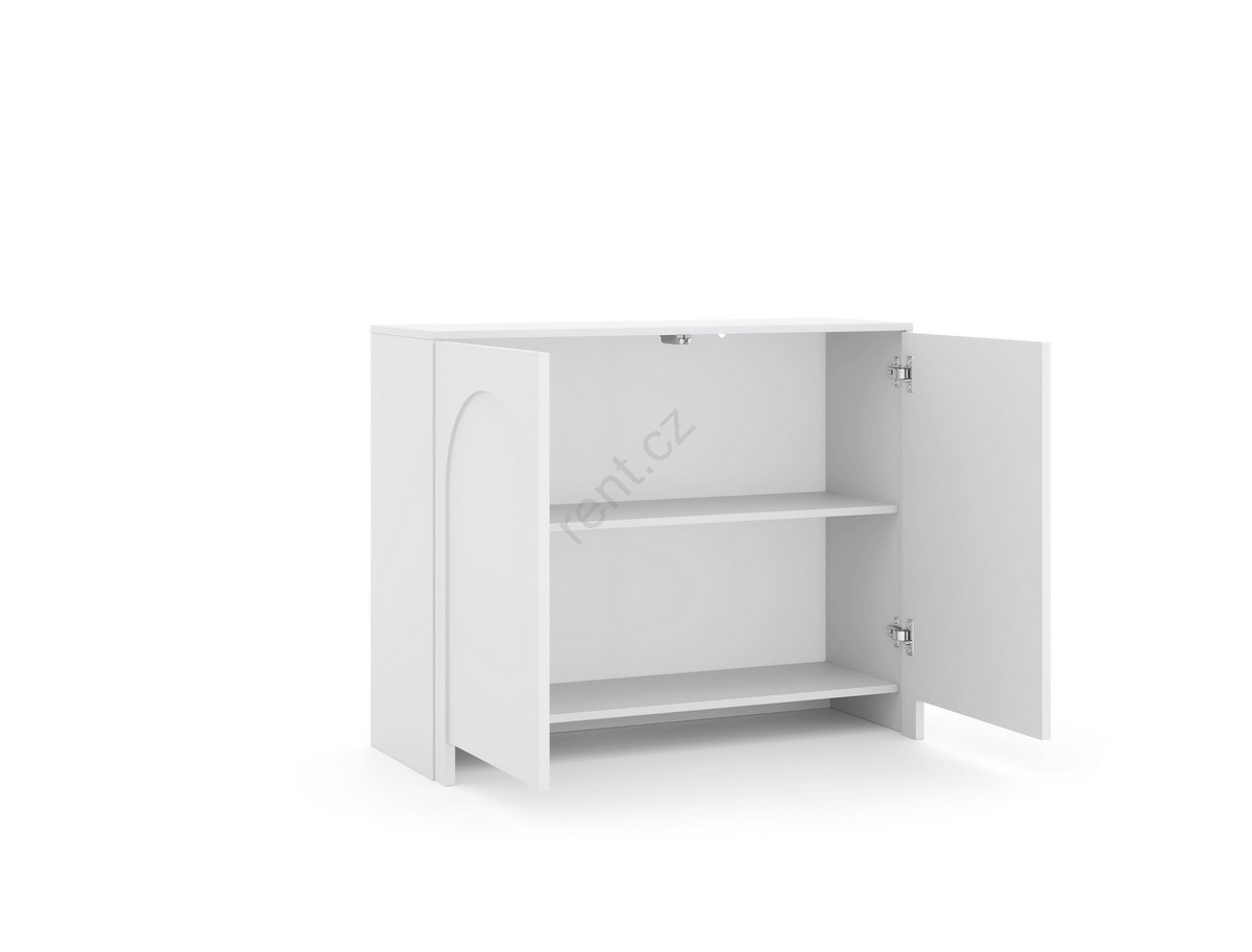• Má dvě dvířka, z nichž každé je zdobeno jemným klenutým vzorem pro rafinovaný vizuální efekt.