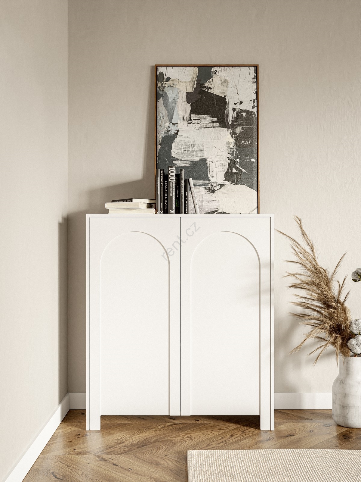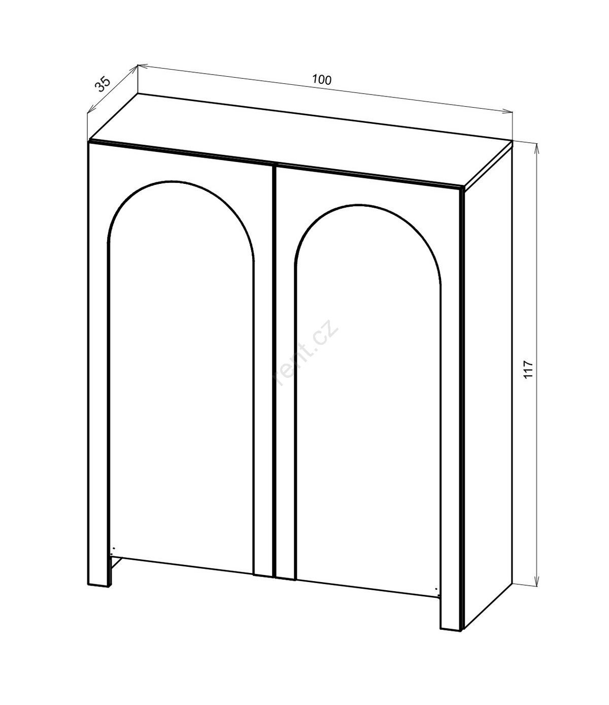• Má dvě dvířka, z nichž každé je zdobeno jemným klenutým vzorem pro rafinovaný vizuální efekt.