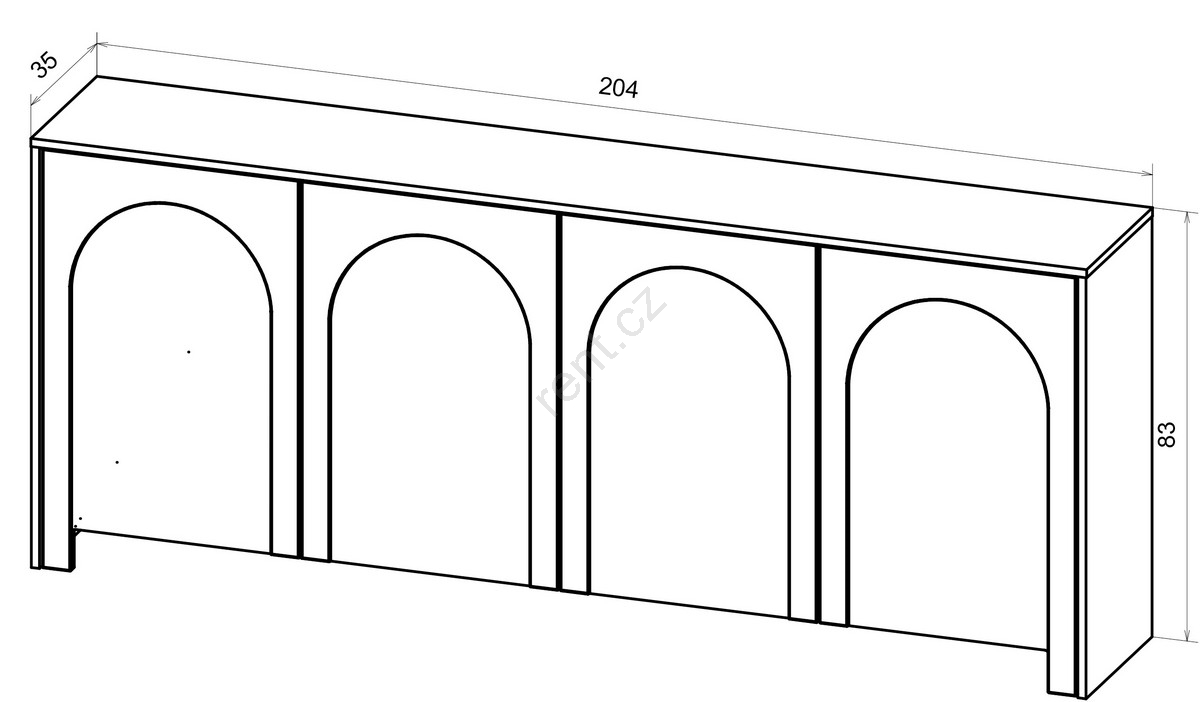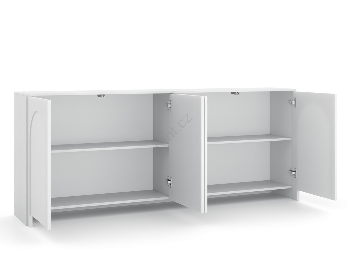 • Má čtyři dvířka, z nichž každé je zdobeno jemným klenutým vzorem pro rafinovaný vizuální efekt.
