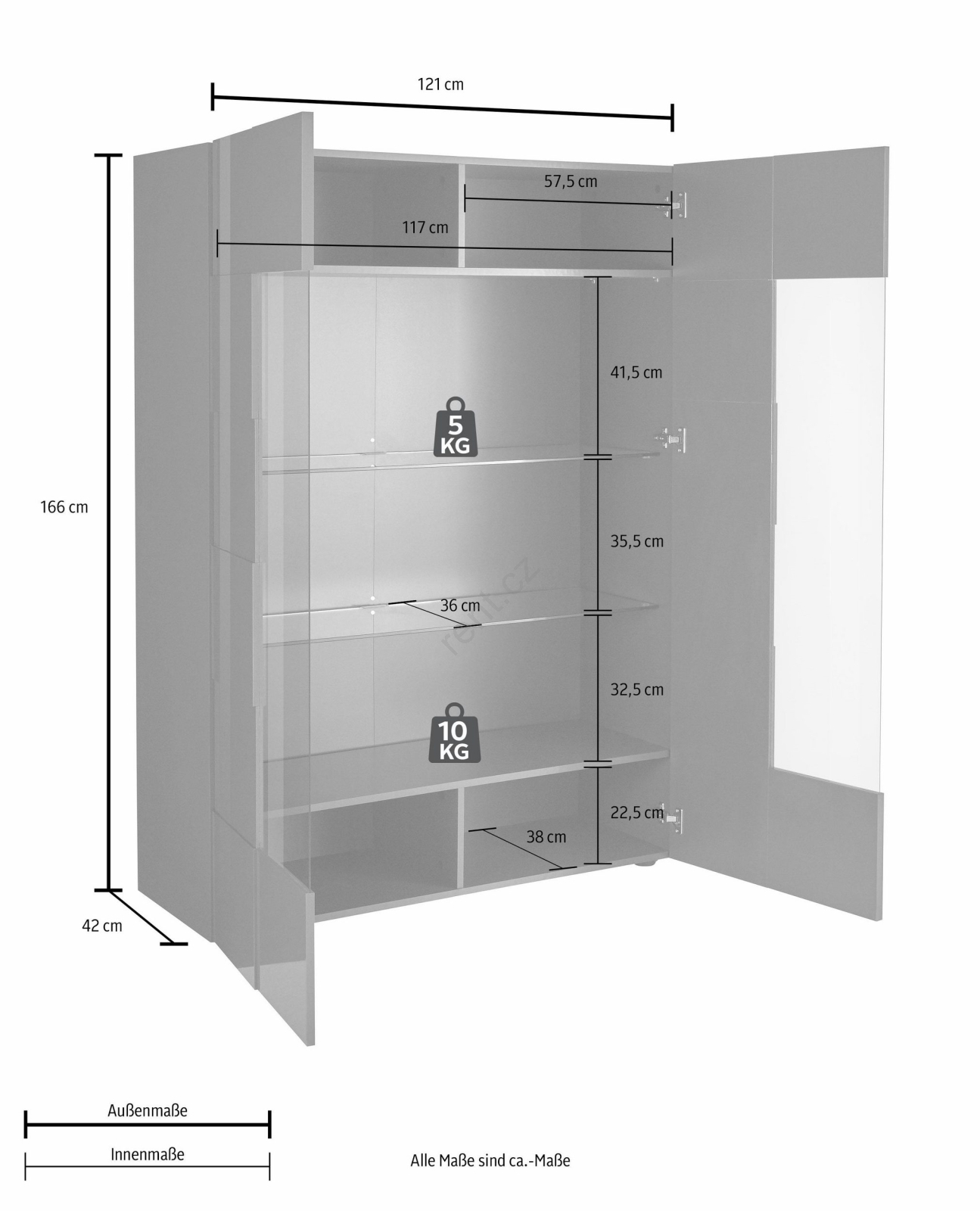 • Box č. 2: 4,2 x 172 x 42,8 cm (14 kg).