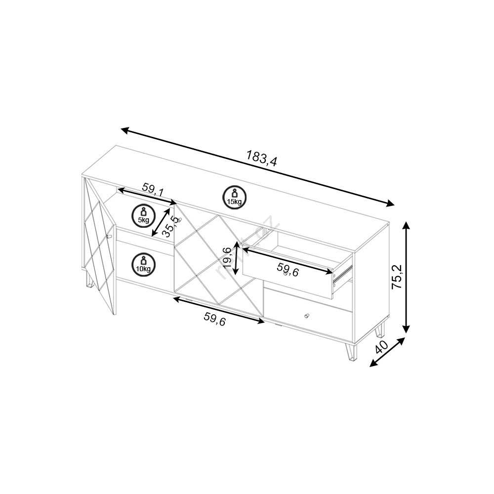 • Má dvě dvířka na levé straně a tři zásuvky na pravé straně, pro přehledné ukládání věcí.