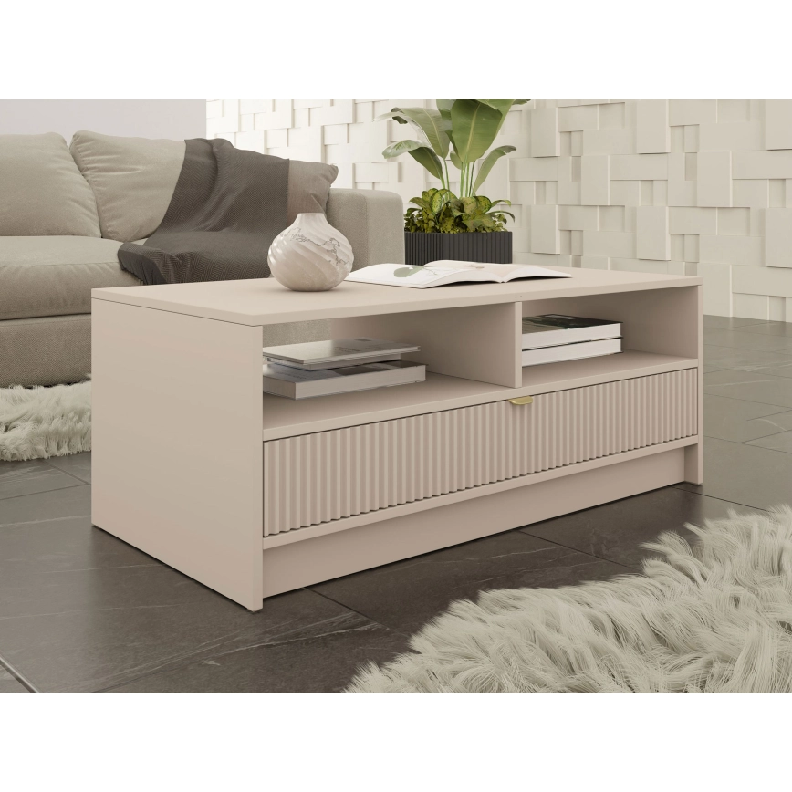 • Konferenční stolek s praktickou zásuvkou a otevřenou policí na odkládání věcí, které chcete mít po ruce.
