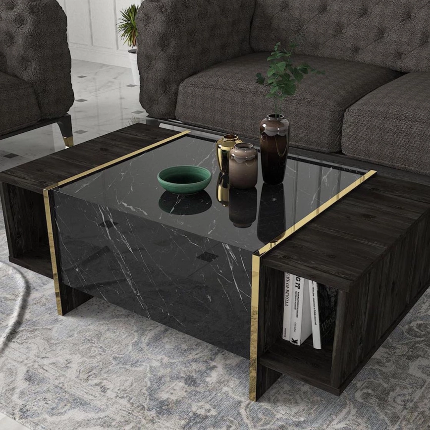 Konferenční stolek VEYRON 104x60 cm černá/mramor/zlatá
