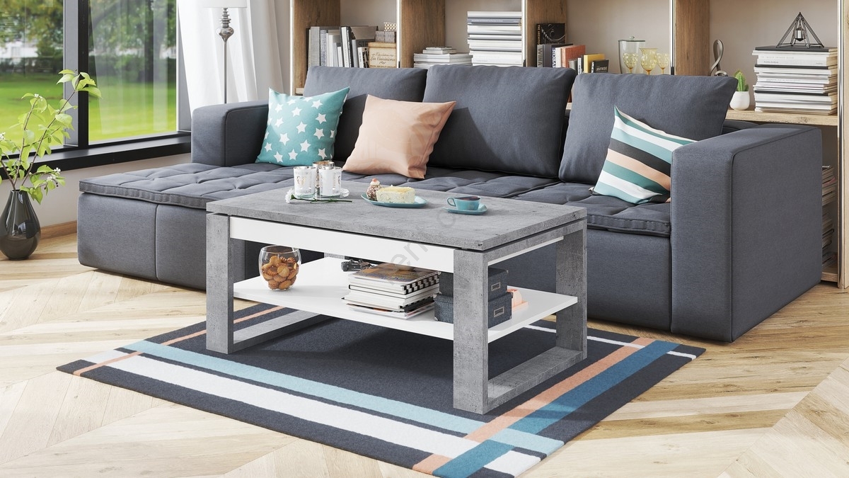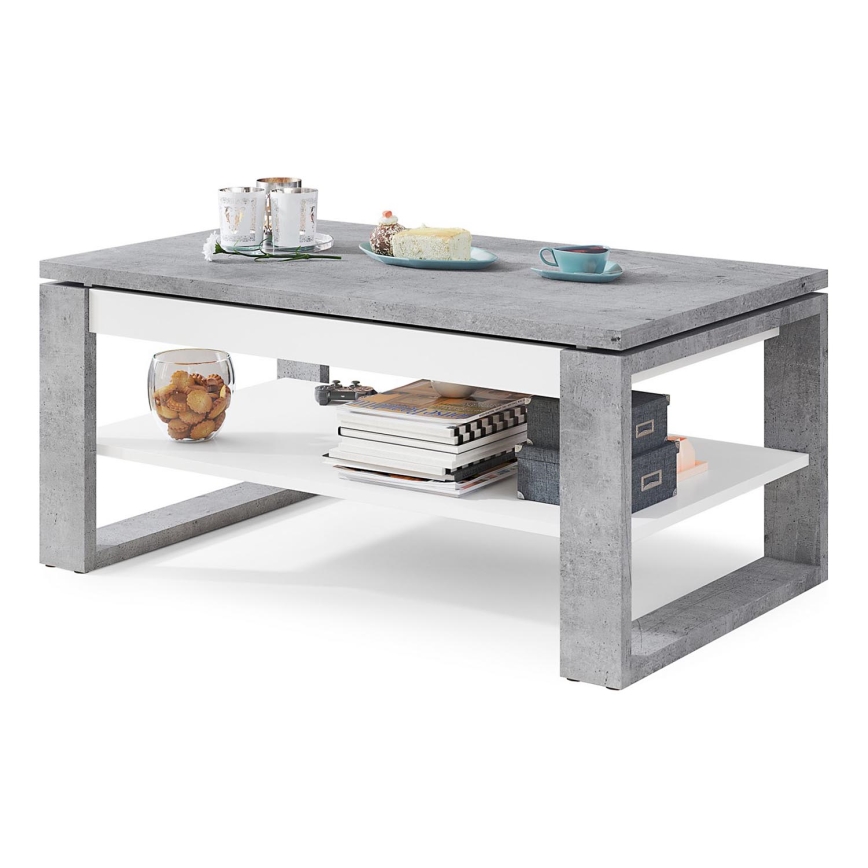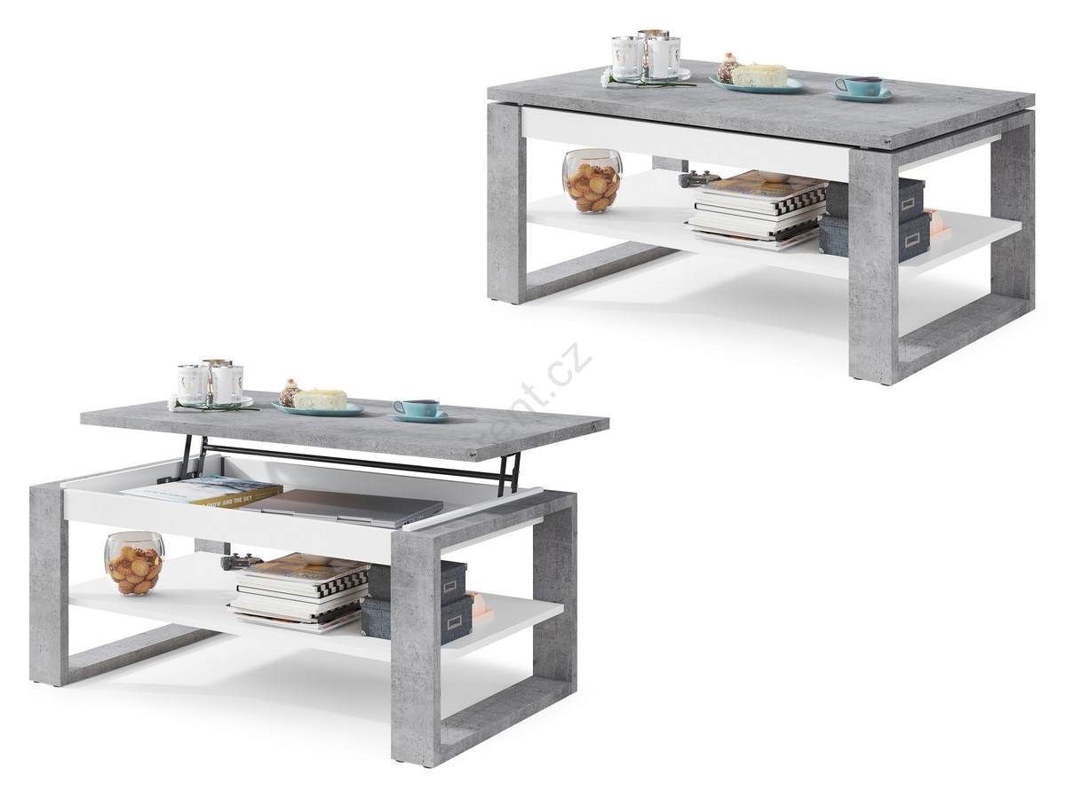Konferenční stůl se zvedací deskou a policí NEA 110x65 cm beton/bílá