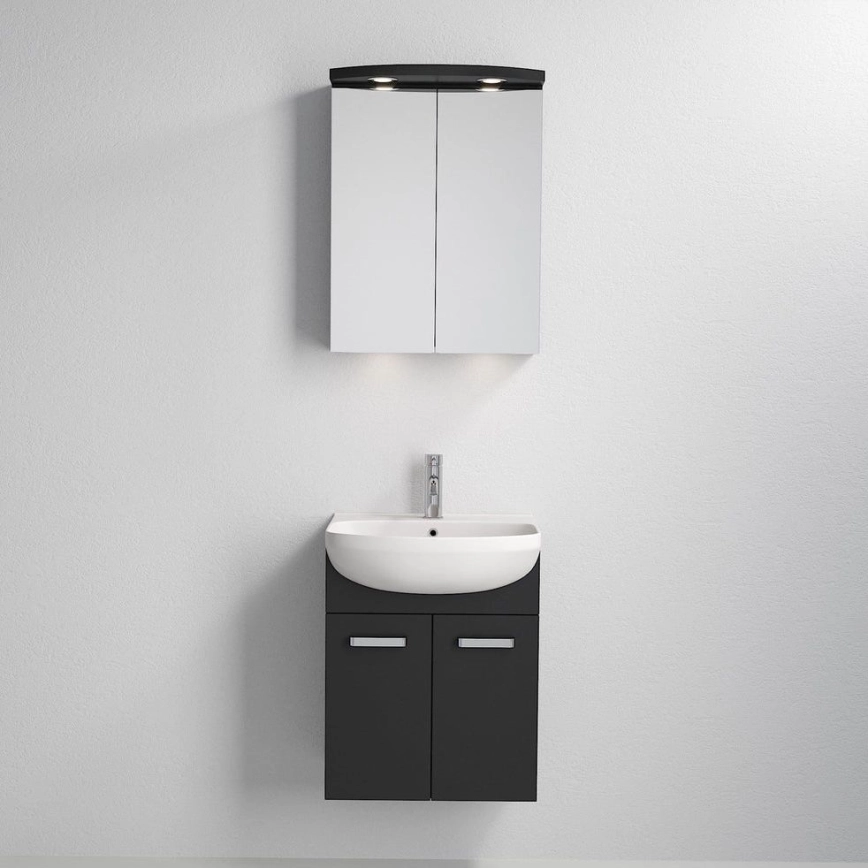 Koupelnová skříňka s umyvadlem Vang + LED zrcadlová skříňka 230V IP44 černá
