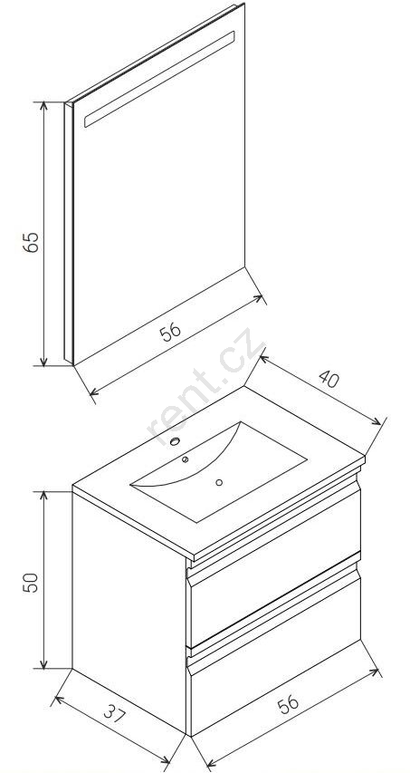 • Rozměry spodní skříňky: 50 x 40 x 56 cm.